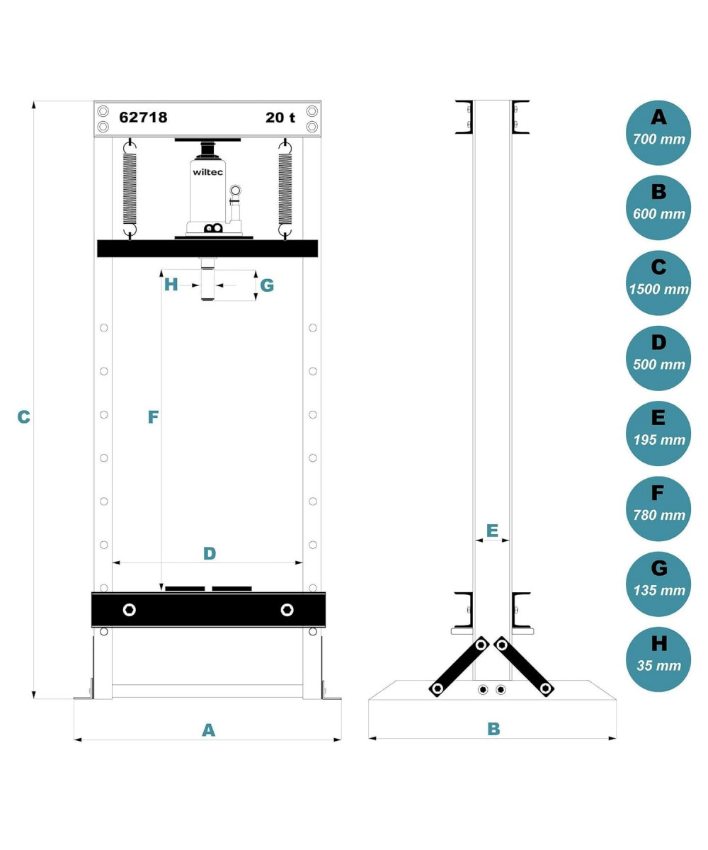 Diese Werkstattpresse mit 20 Tonnen Druckkraft bietet ideale Unterstützung im Handwerk, in der Industrie, der Landwirtschaft, dem Garten- und Landschaftsbau und in vielen anderen Einsatzgebieten. Das Prinzip ist ganz einfach: Mit geringer Kraft am Druckkolben wird eine enorme Kraft am Arbeitskolben erzeugt. Damit ist die manuelle Presse vielseitig und universell einsetzbar.