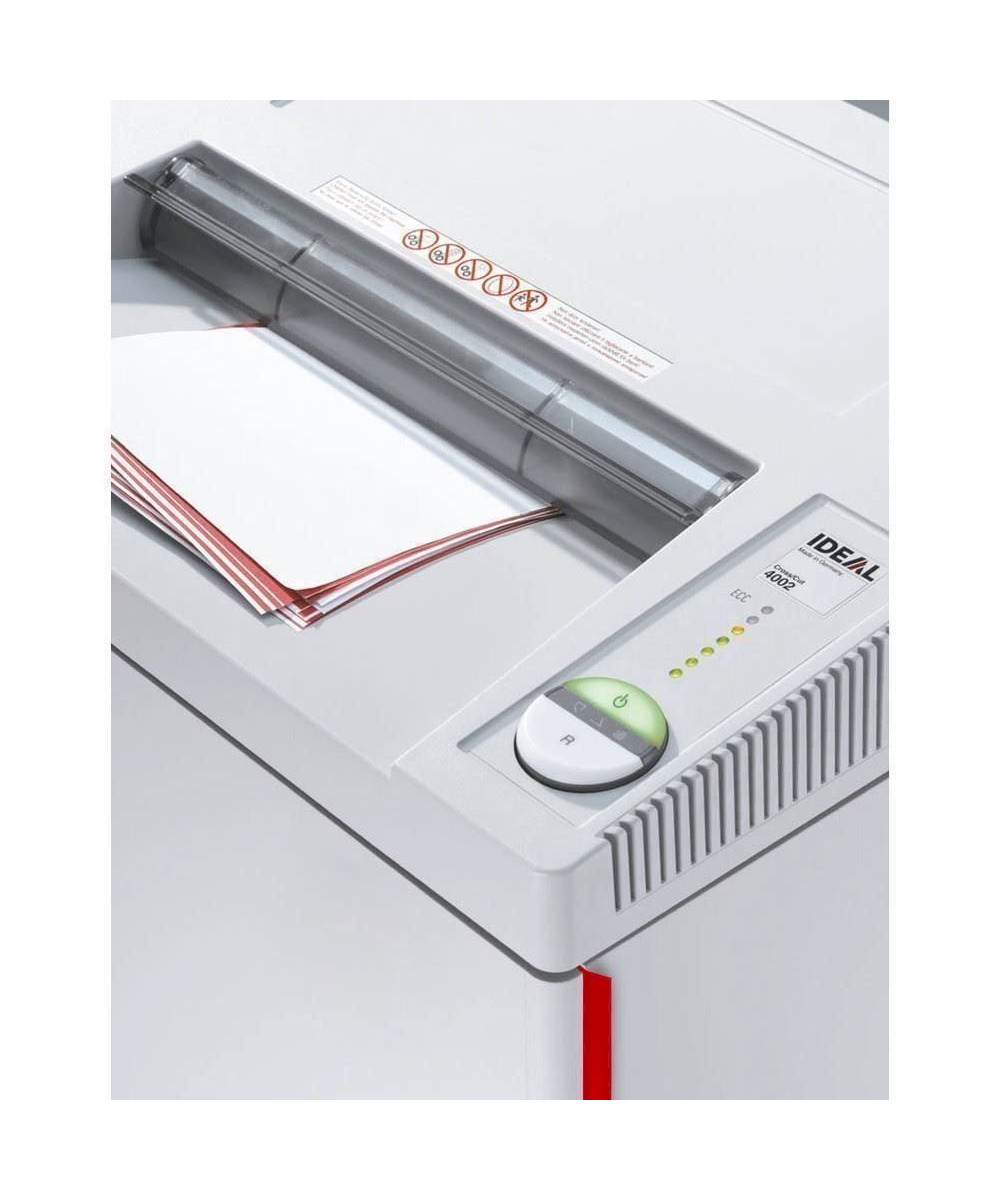 Ein intelligentes Schaltsystem "Easy-Switch" mit Automatik-Funktionen und eine einfach Bedienerführung zeichnen diesen Aktenvernichter 4002 CC von IDEAL aus.