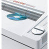 Autom. Start-/Stopp-Funktion über Lichtschranke. Büroklammernfeste Vollstahl-Schneidwalzen aus gehärtetem Spezialstahl.