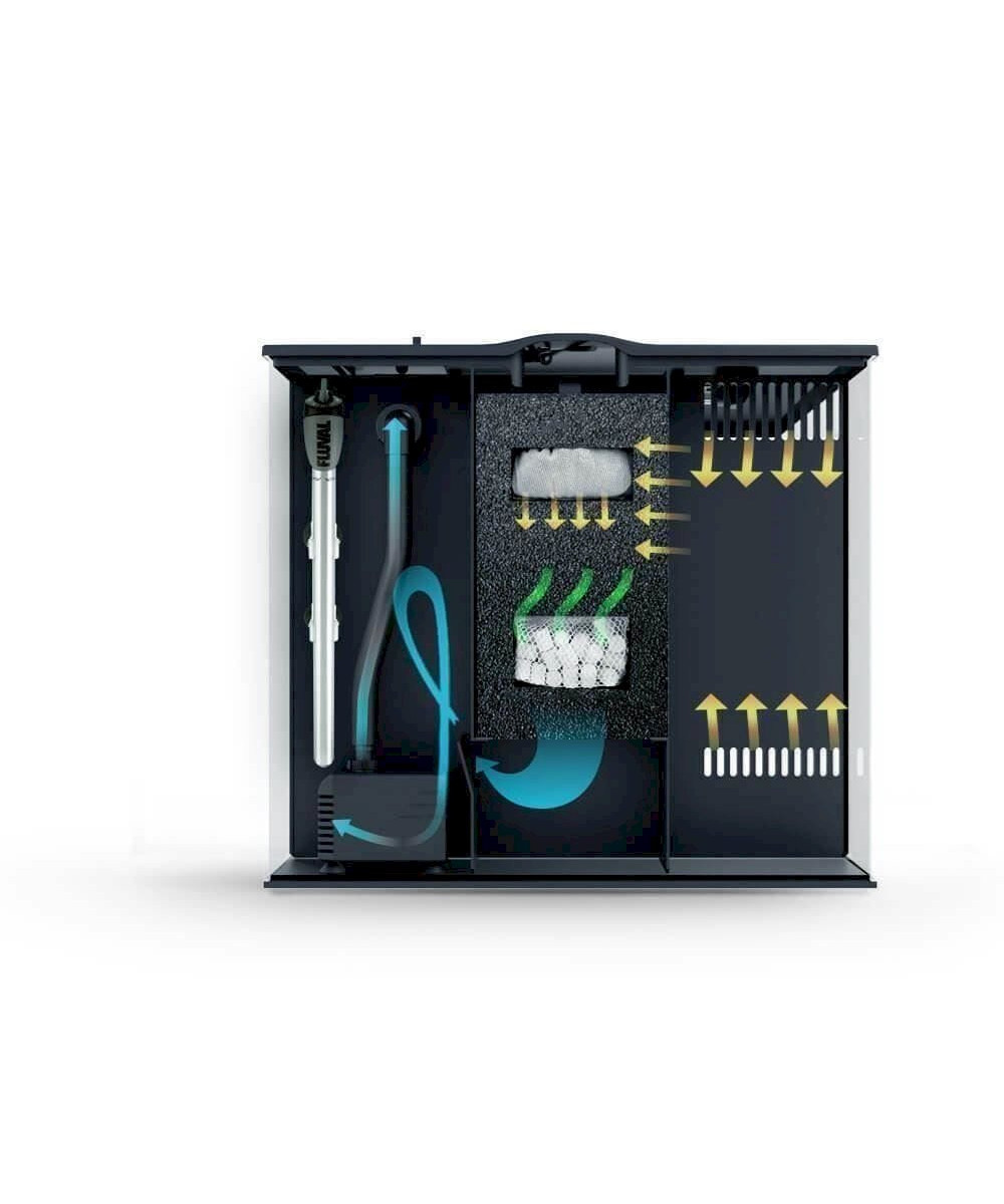 - Filterfach im hinteren Bereich des Aquariums versteckt