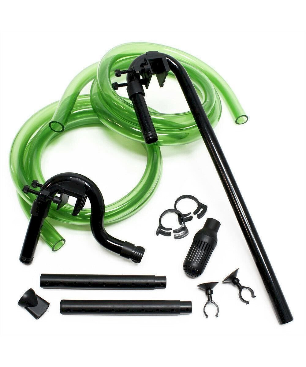 Die manuelle Pumpe muss betätigt werden, bis keine Luftblasen mehr zu sehen sind. Anschließend muss der gefüllte Schlauch mit einem Finger geschlossen und wieder an die für ihn vorgesehene Rückführungsverrohrung am Rand des Aquariums angebracht werden.