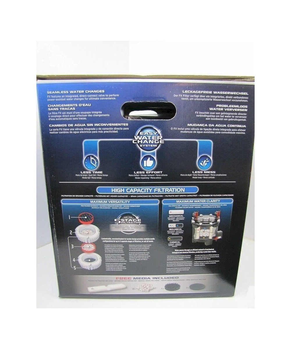 Der Mehrstufenfilter wälzt bis zu 2650 Liter Wasser pro Stunde um und filtert es auf mechanische, biologische und chemische Weise. Filtermedien sind im Lieferumfang enthalten . Die stapelbaren Filterkörbe im Fluval FX4 Außenfilter sind so konstruiert, dass ein sogenannter Bypass, also das Vorbeifließen des Wassers, verhindert wird, was wiederum zu einer gründlichen Reinigung beiträgt.