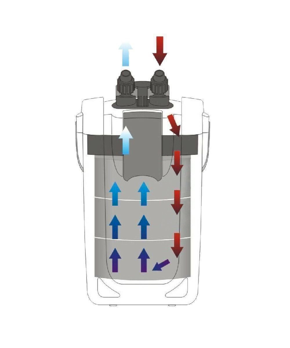 Die Stärke des Aquarium Außenfilter ist, dass kein bzw. wenig Platz im Aquarium verschwendet wird. Ein Aquarien Außenfilter kann bequem unter oder neben dem Becken platziert werden, zur optimalen Positionierung sind die Schlauchanschlüsse auf der Deckeloberseite um 360° drehbar. Durch das Behältervolumen kann mit sehr großen Filtervolumen gereinigt werden, es ist genug Platz für unterschiedliche Filtermedien.
