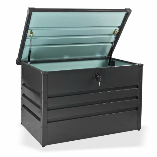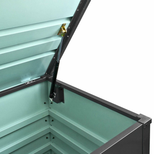 Die nützliche Metallbox ist die ideale Aufbewahrungsmöglichkeit für alle Utensilien in Haus und Garten. Ob Stuhlauflagen, Gartenaccessoires oder Kinderspielzeug - alles lässt sich einfach und sicher in der geräumigen und stabilen Box verstauen. Sie ist durch die positiven Materialeigenschaften sehr lange haltbar und praktisch wartungsfrei. Der leichtgängige, aufklappbare Deckel mit 2 Gasdruckfedern macht das Verstauen von Gegenständen einfach. Auch das vorhandene Knebelschloss unterstreicht den praktischen und zweckdienlichen Charakter.