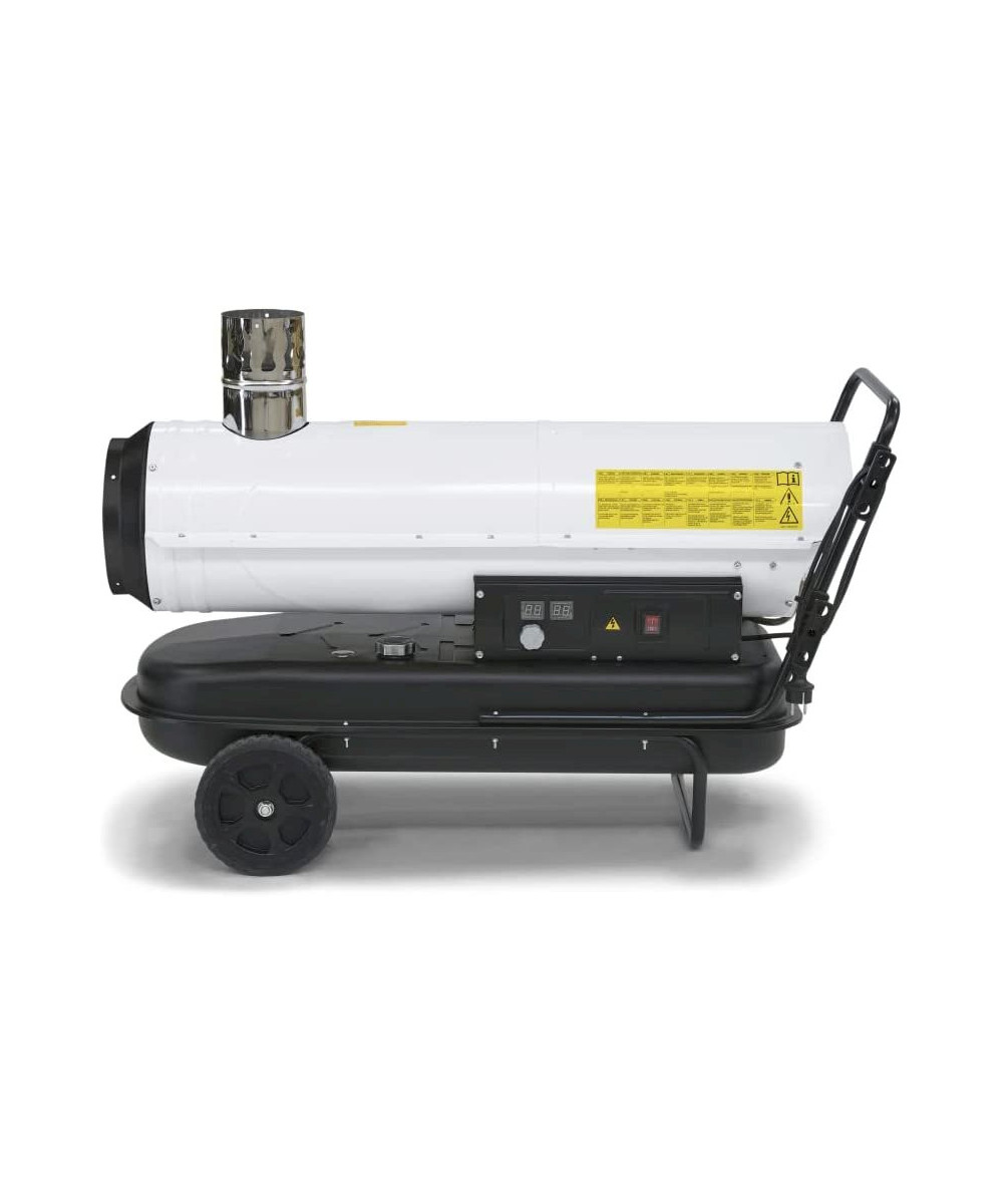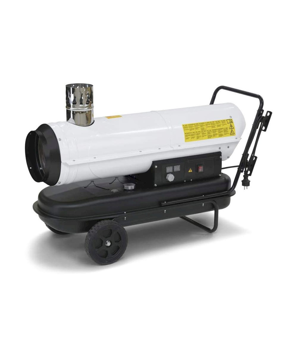 Aufgrund seines strapazierfähigen Gehäuses aus doppelt lackiertem Material ist dieses indirekt befeuerte Ölheizgebläse für Beheizungseinsätze in Außenbereichen bestens präpariert und lässt sich darüber hinaus bei Verwendung der optional erhältlichen Rauchgasabfuhr auch zur Beheizung geschlossener Räumen einsetzen.