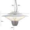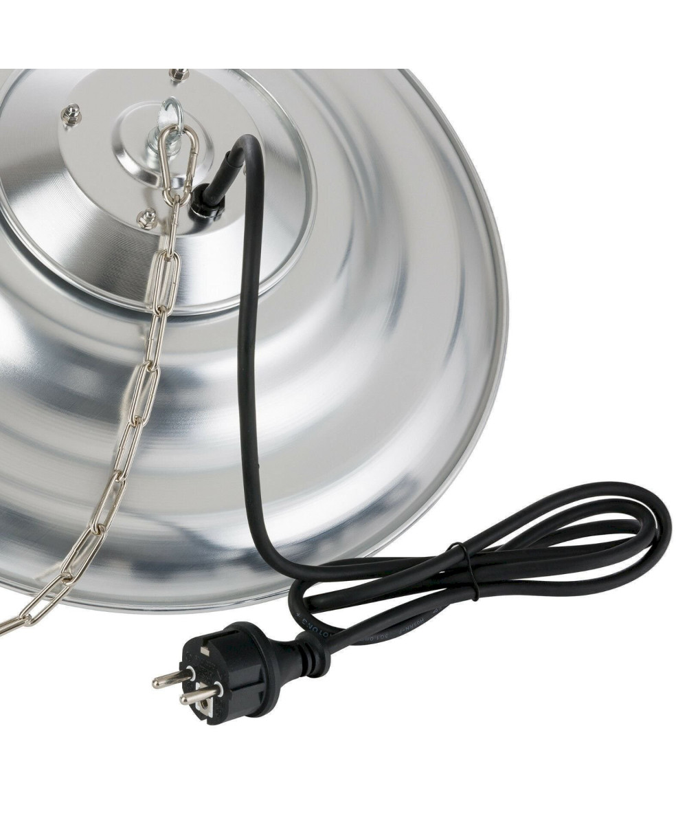 - Einfache Montage: Der Infrarotstrahler lässt sich unkompliziert hängend an Decken, Zeltgerüsten oder Terrassenüberdachungen installieren. Eine stabile Edelstahlkette, die für den nötigen Sicherheitsabstand zur Decke sorgt, ist im Lieferumfang enthalten.