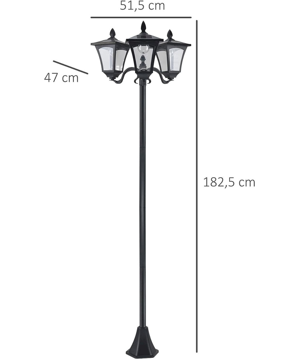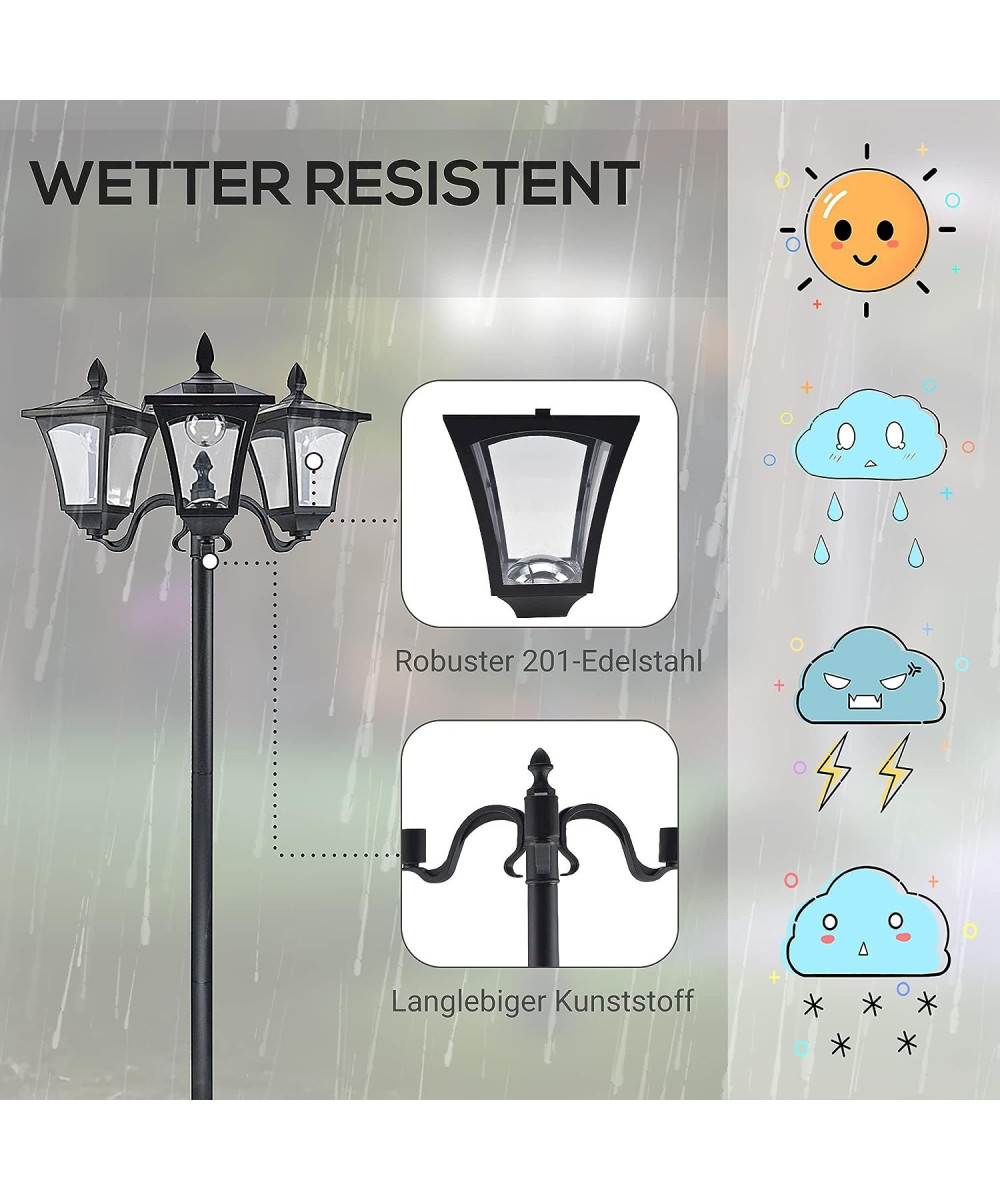 Outsunny Solar Gartenlaterne mit 3 flammig Laterne Solarlaterne Wegleuchte Edelstahl Schwarz