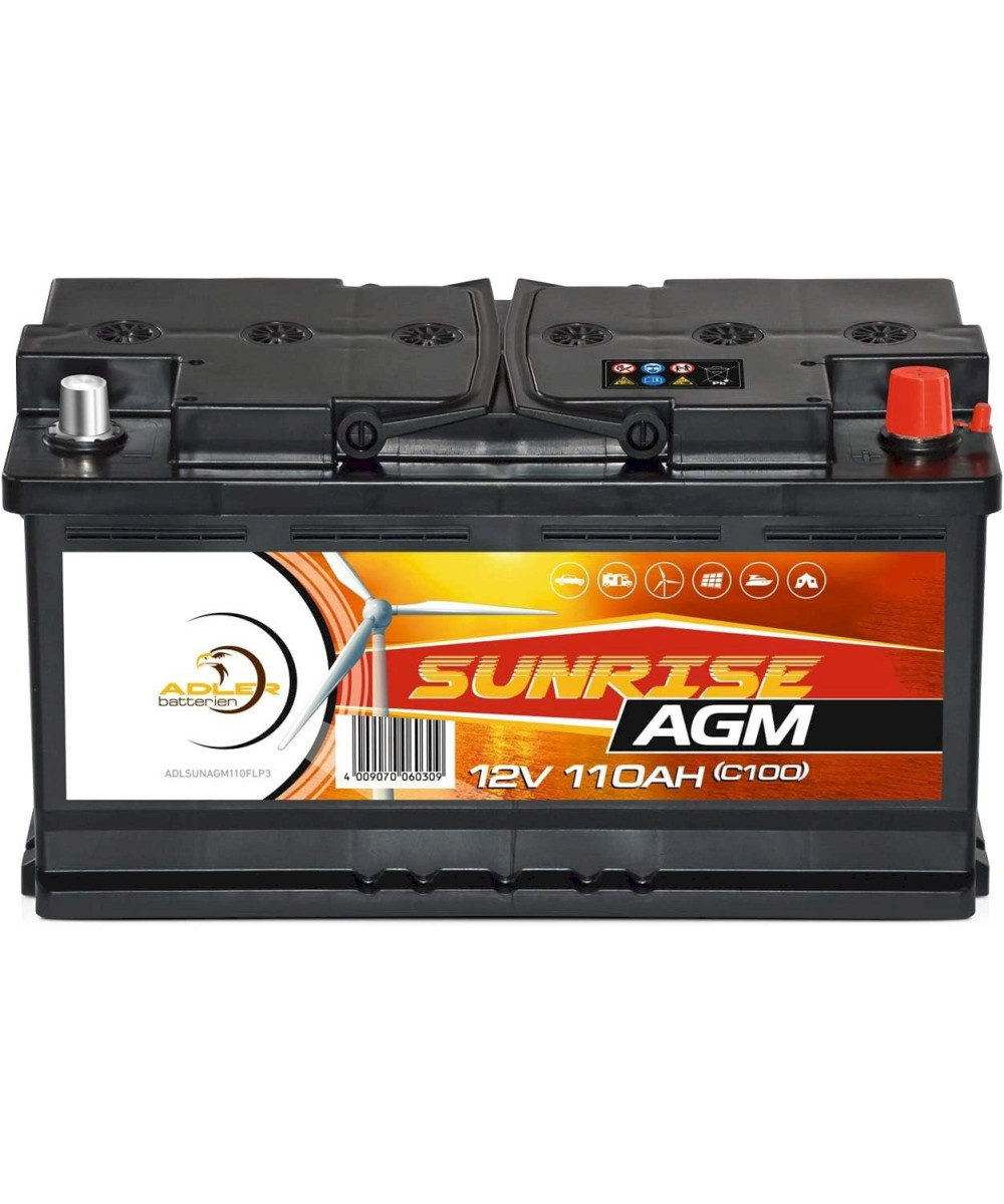 Solarbatterie AGM 12V 110Ah SUNRISE Versorgungsbatterie Wohnmobil Batterie
