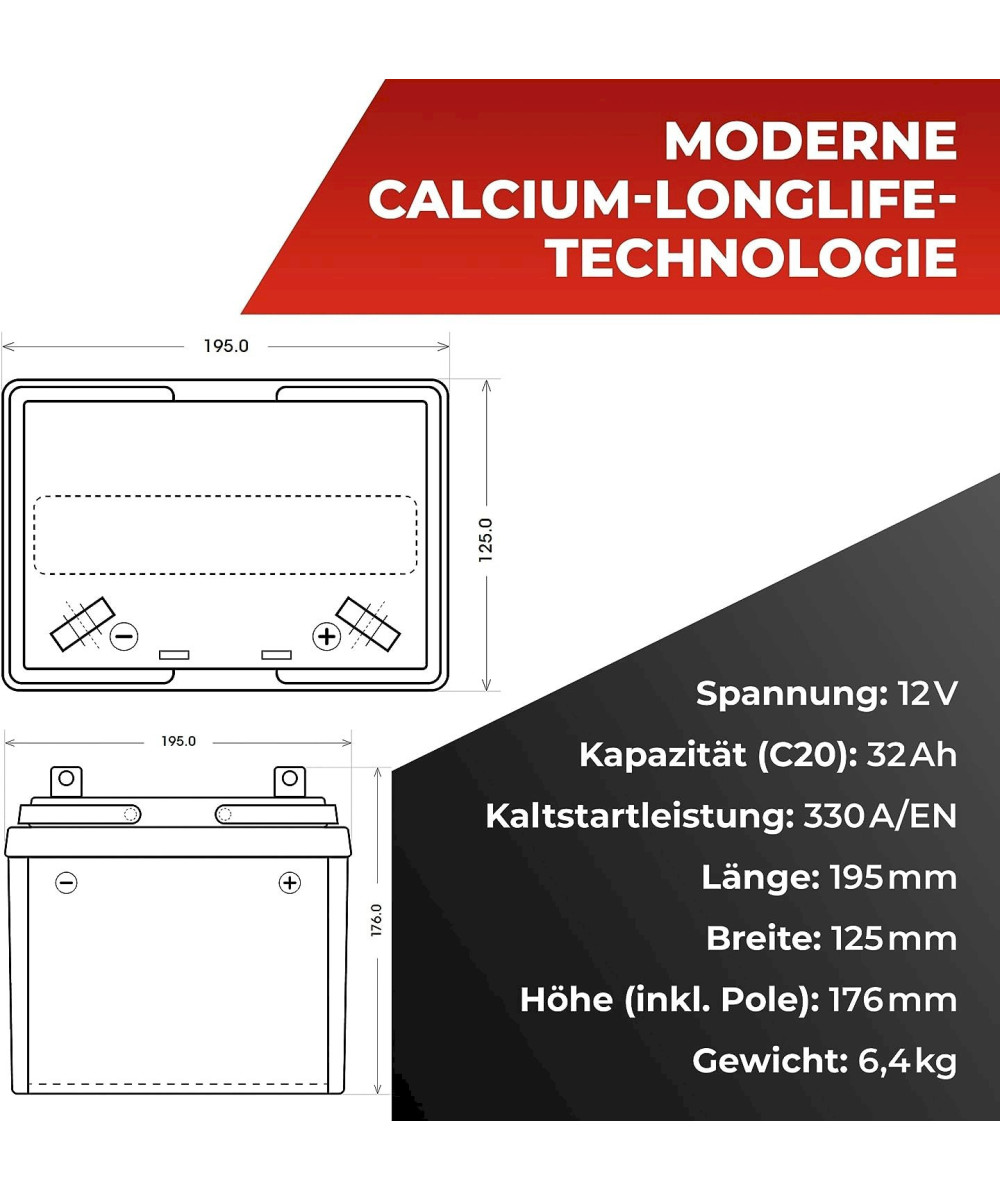 - Wartungsfreie Batterie, ideal für Rasenmäher, Aufsitzmäher und Rasentraktoren