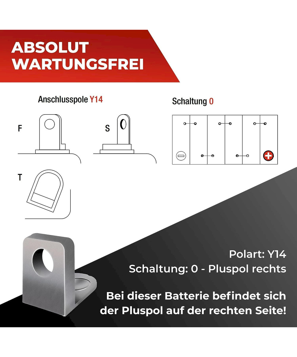 Hinweis: Bei dieser Batterie befindet sich der Pluspol auf der rechten Seite!