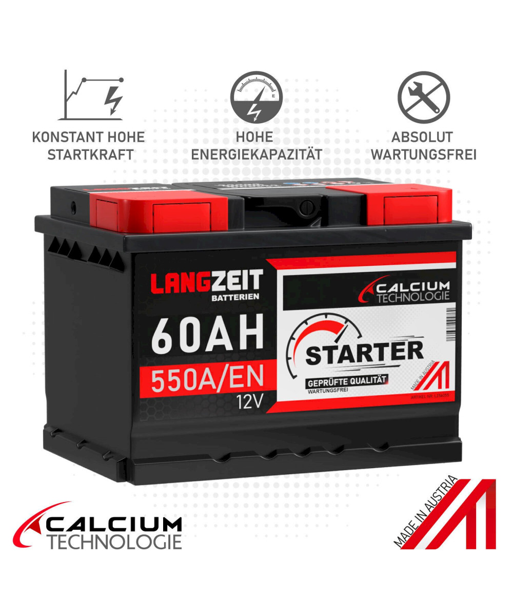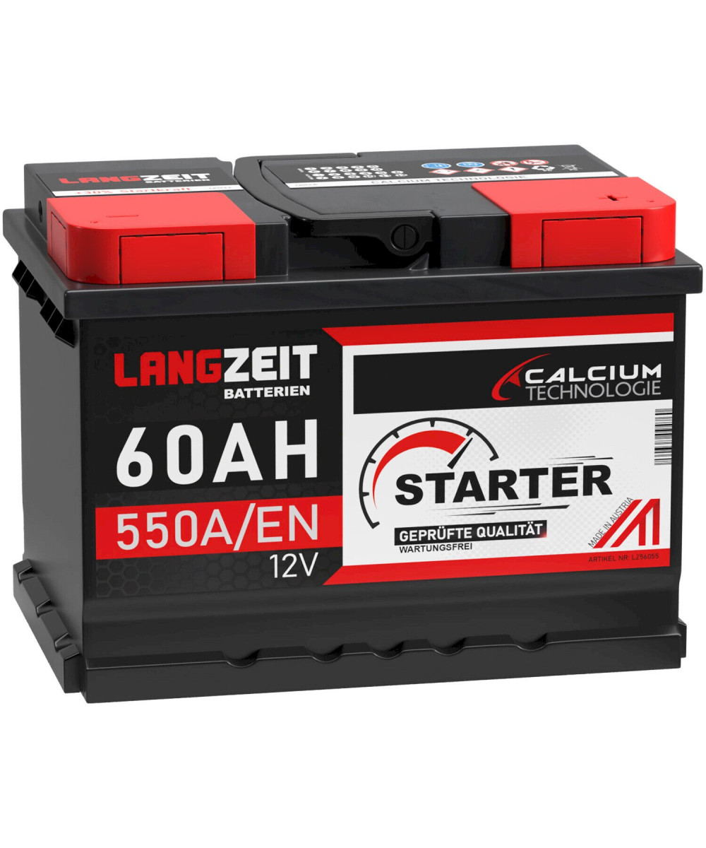 LANGZEIT Autobatterie 12V 60Ah Starterbatterie