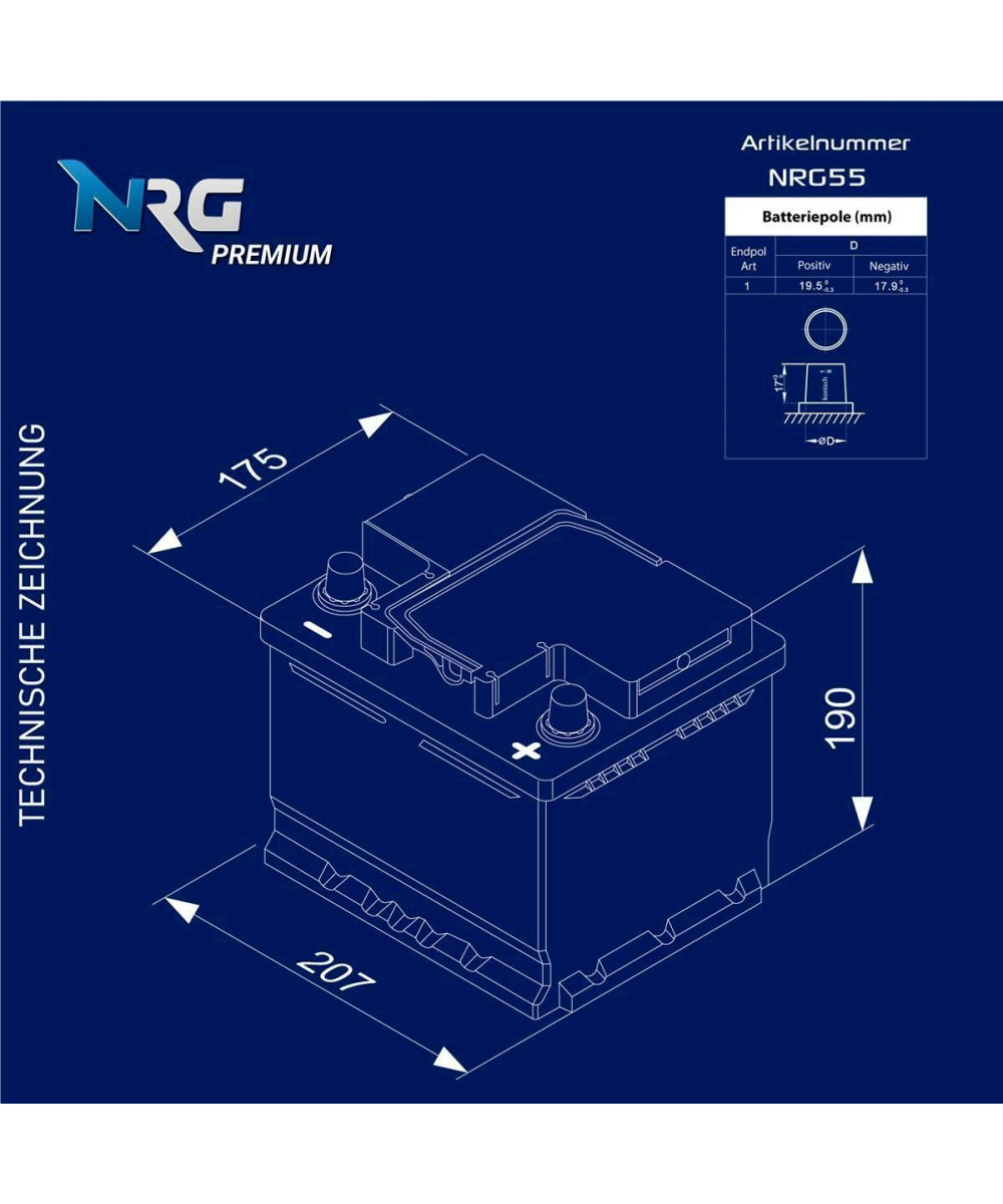 NRG Autobatterie 12V 55Ah Starterbatterie