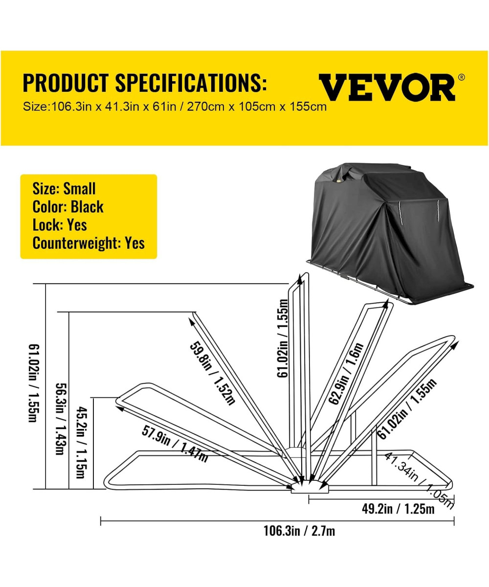VEVOR Motorrad Abdeckungen 270x105x155cm Faltgarage motorroller wasserdicht & UV-geschützt