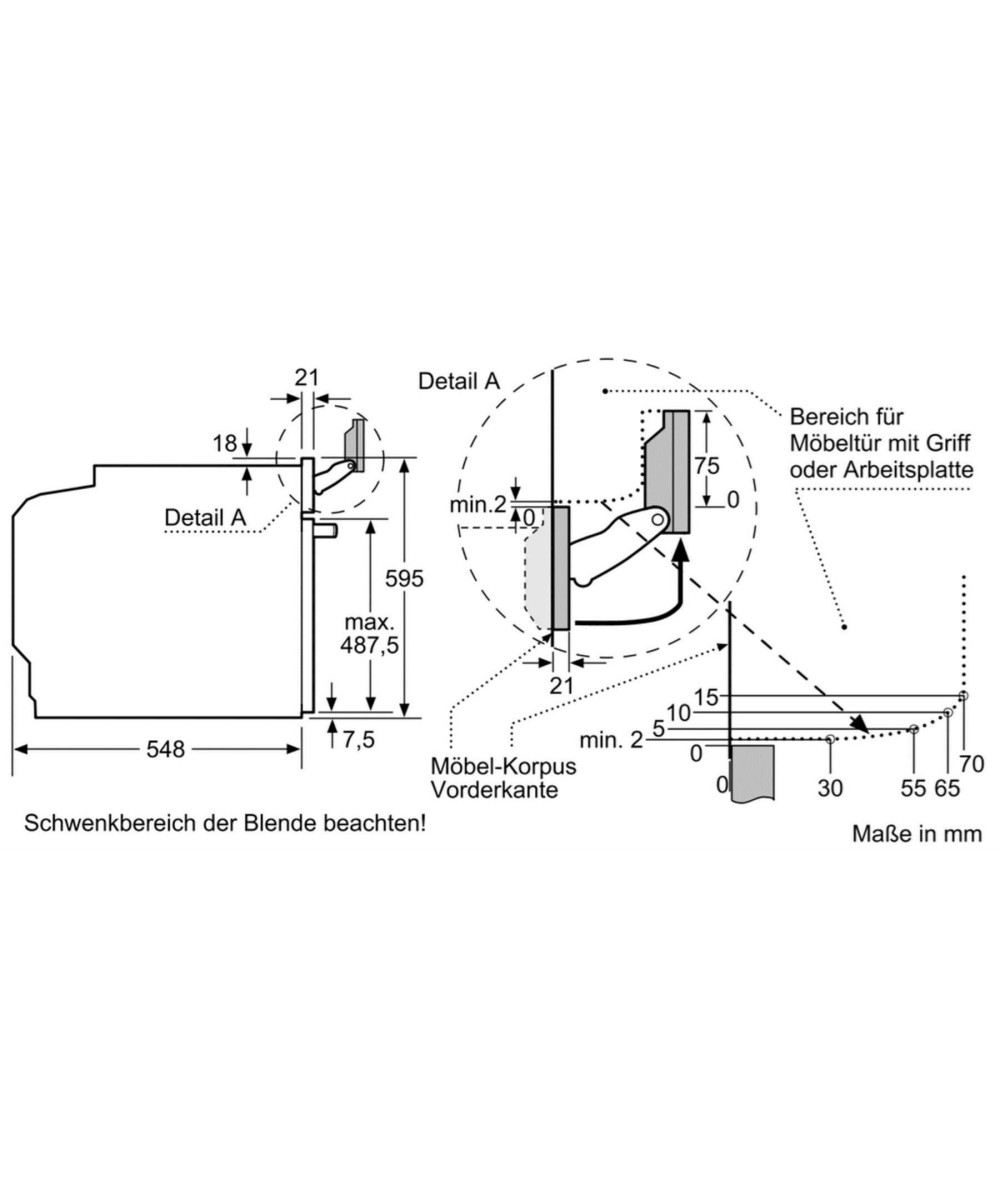 - „Maße und Einbauhinweise zu diesem Gerät gemäß technischer Zeichnung beachten“