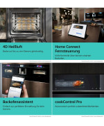 - Backofen-Assistent mit Sprachsteuerung: ja (verfügbar mit angeschlossenem Home Connect-Account & Drittanbieter, z. B. Alexa, ist erforderlich)