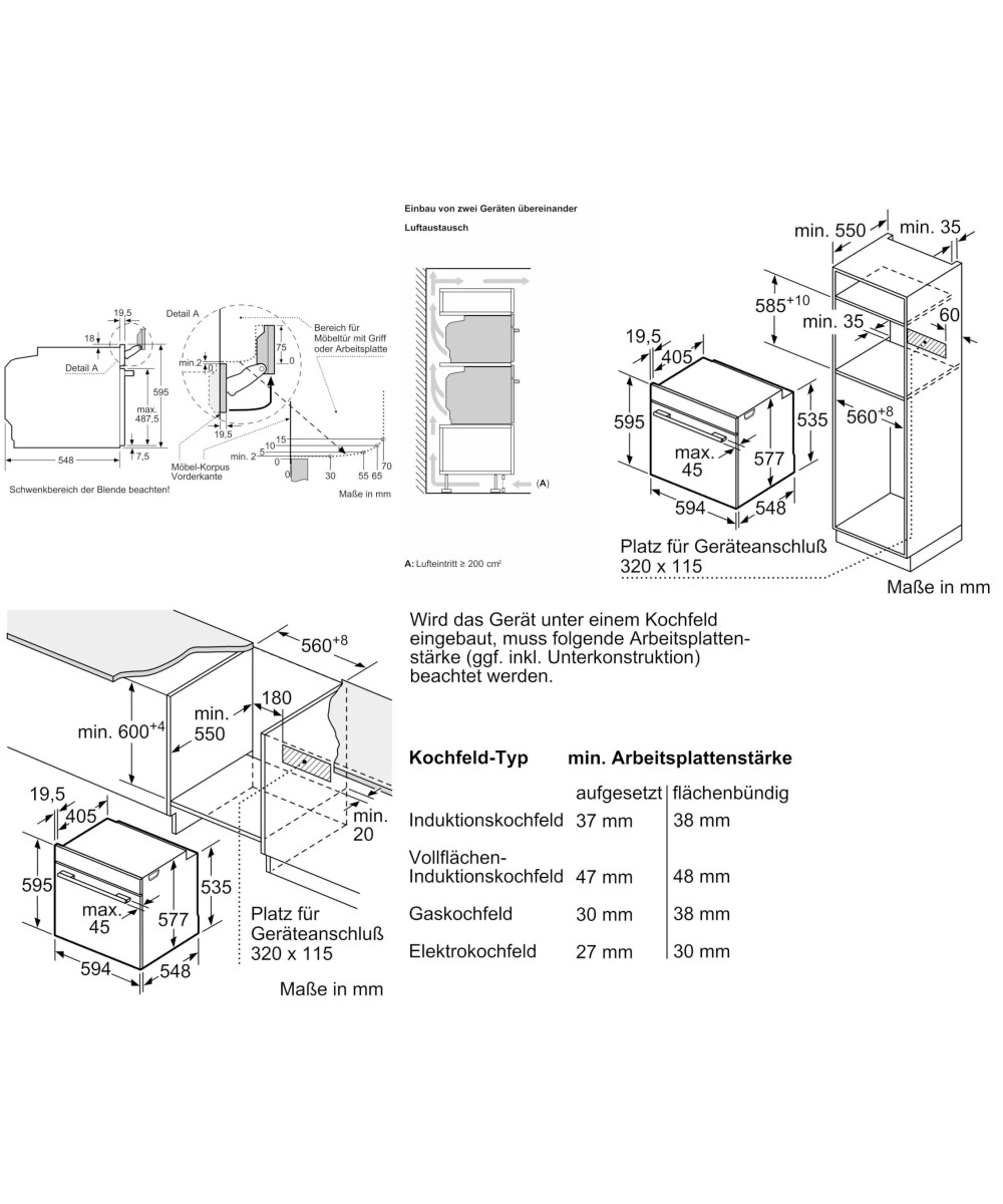 - Abmessungen des Gerätes (H x B x T): 595x594x548 mm