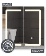 Aquamarin Spiegelschrank 2 Türig mit LED Beleuchtung und Rasiersteckdose 65x65x13cm Badspiegel