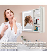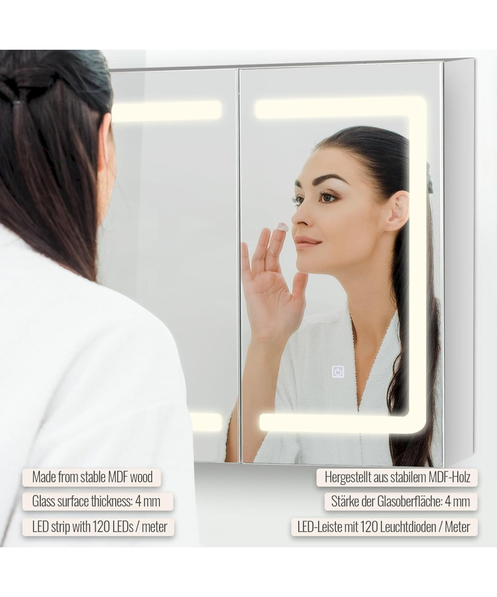 Verleihen Sie Ihrem Badezimmer ein futuristisches Aussehen mit unseren Spiegelschränken mit LED-Beleuchtung, die zeitgemäße Ästhetik mit innovativer Technologie und hoher Funktionalität verbinden. Der Stauraum dieses modernen Badezimmerschranks ist mehr als ausreichend für all Ihre Badezimmerutensilien, sei es Hautpflege-, Schmink- oder Hygieneartikel.