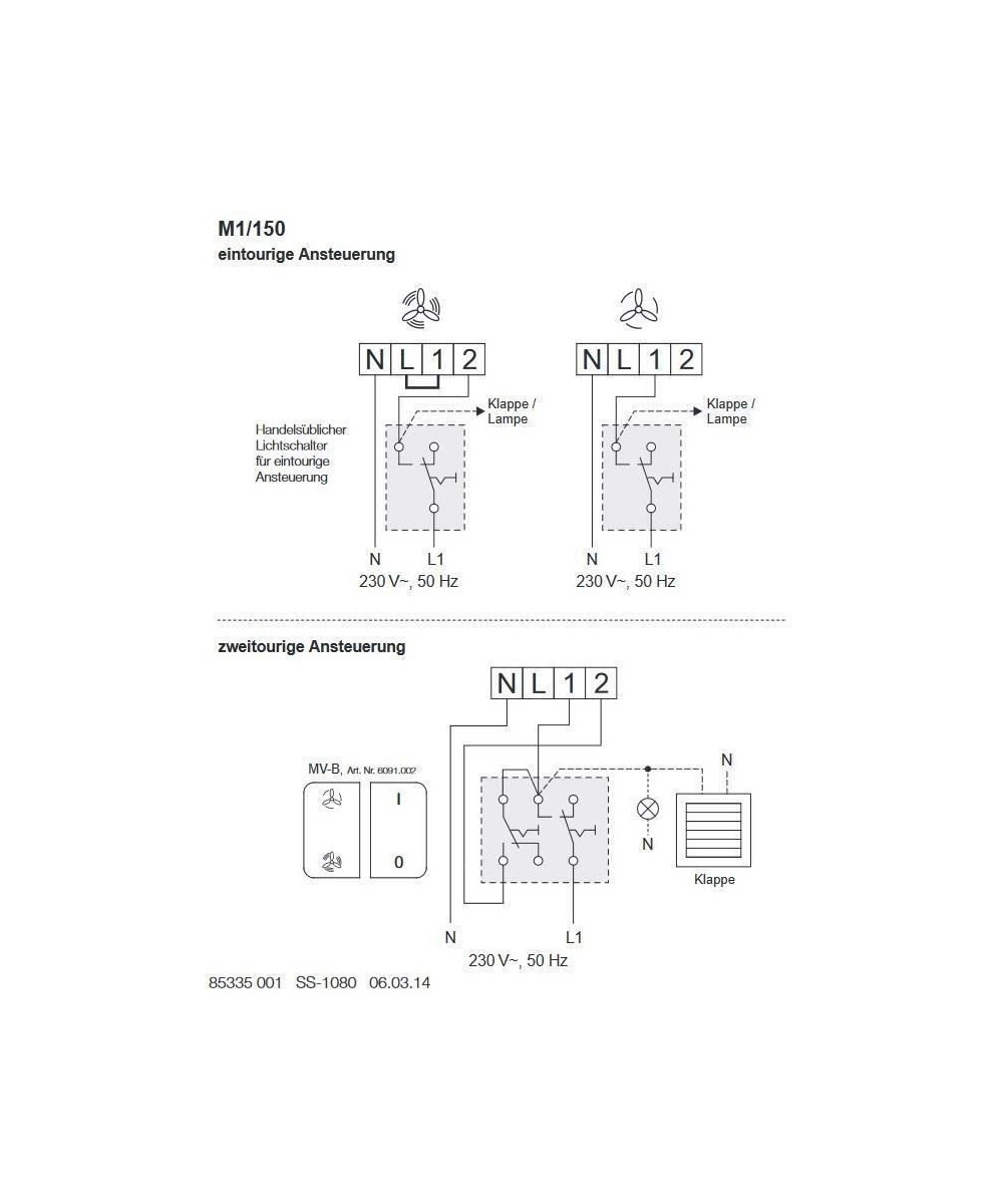 Kleinlüfter MiniVent M1/150, Standardmodell mit 2 Leistungsstufen ( 260/220 m/h)