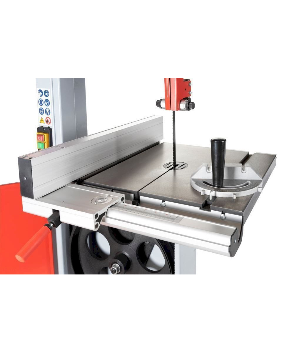 - Präzisionssägebandführung mittels Handrad und Zahnstange exakt positionierbar