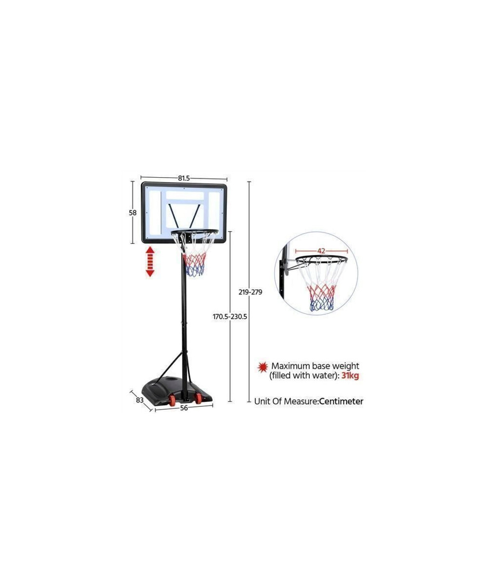 Durch die faltbare Stützstange mit 6 Set Löchern ist die Höhe des Basketballkorbs zwischen 219-279cm verstellbar.