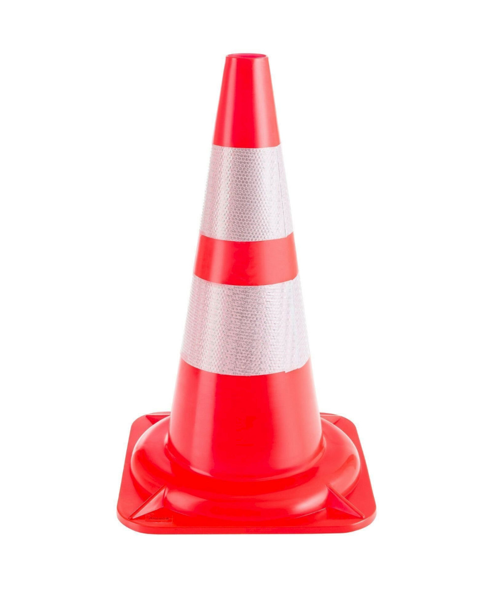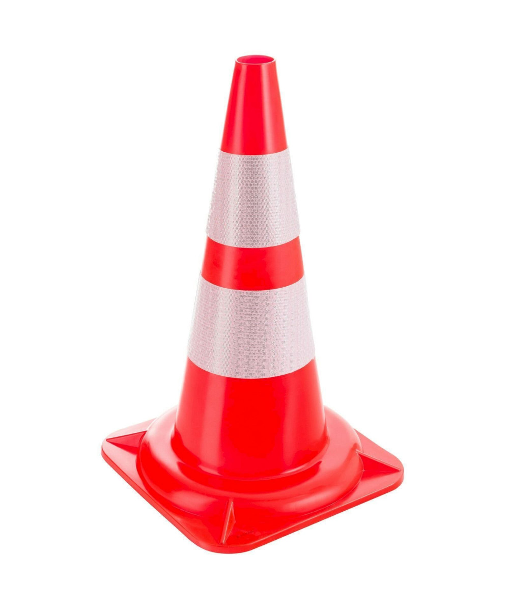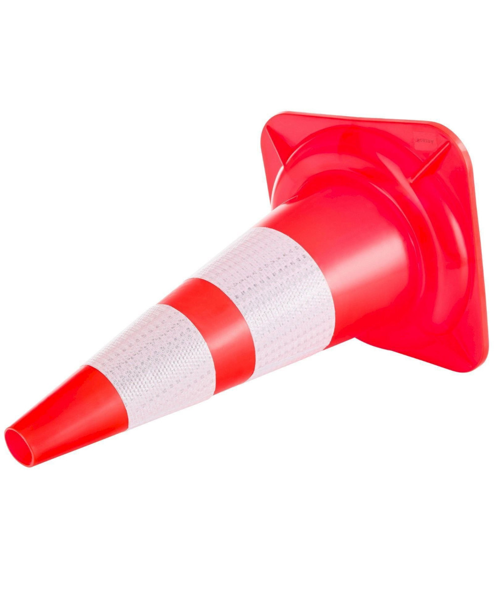 Die Verkehrs-Leitkegel sind 50 cm hoch , besitzen eine Standfläche von jeweils 29,5 cm x 29, 5 cm und wiegen 1,15 kg pro Stück. Um die Sichtbarkeit zu intensivieren, haben diese eine starke Farbgebung in Orange mit zwei reflektierenden weißen Streifen , welche jeweils 10 cm Höhe ausweisen.