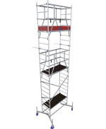 Enthalten sind das Grundgerüst, die 1. Aufstockung und 2. Aufstockung sowie ein höhenverstellbarer Fahrrollensatz ø 150 mm.