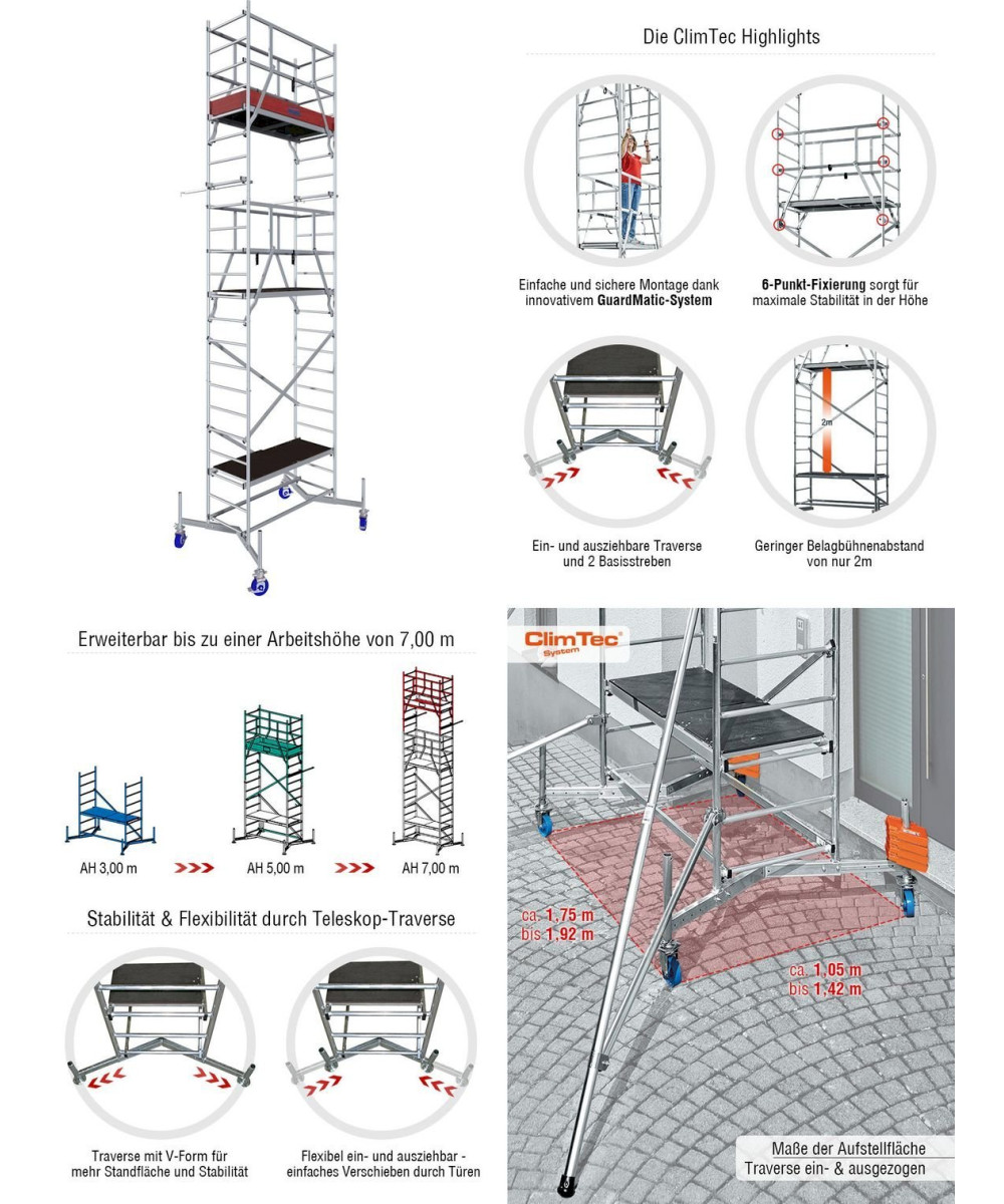 Bei Arbeitshöhen bis 7,00 m überzeugt das KRAUSE ClimTec seit Jahrzehnten mit dem besten Preis-/Leistungs-Verhältnis auf dem Markt.