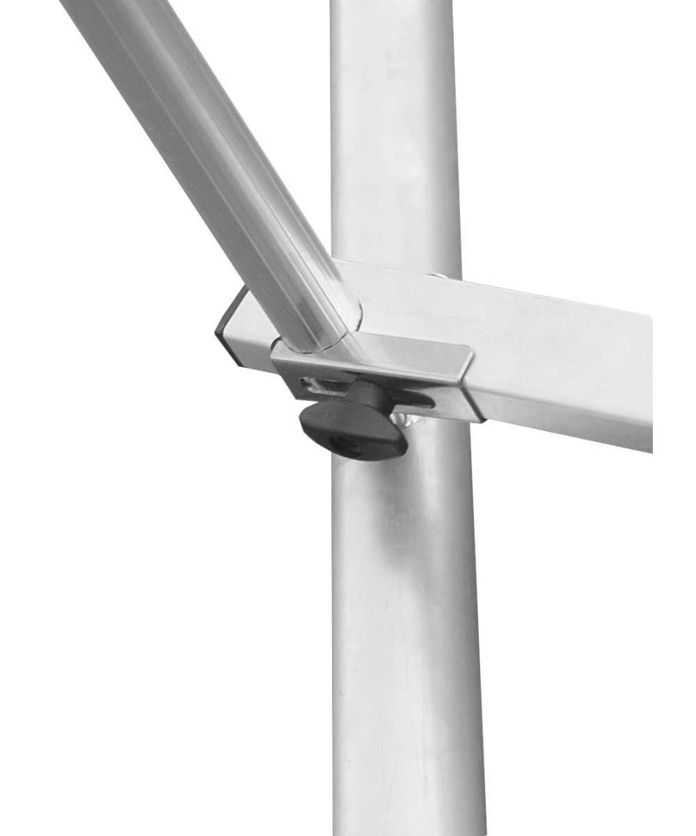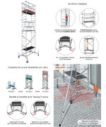 - Sichere Montage: GuardMatic-System ermöglicht die Befestigung des Geländerrahmens vor dem Einhängen der nächsten Belagbühne. Beim Durchsteigen der nächst höheren Belagbühne ist somit ein komplettes Geländer und damit eine Absturzsicherung vorhanden