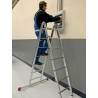 Vielseitig verwendbares Gerüst-Leitern-System. Als Arbeitsgerüst mit einer Arbeitshöhe von ca. 4,85 m, als 2 separate AnlegeLeitern mit 14 Sprossen und 2 Gelenk-Sprossen-DoppelLeitern 2x7 Sprossen.