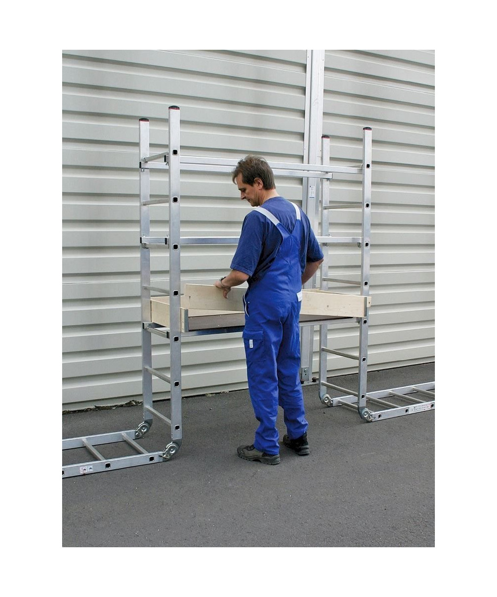 - Konzipiert für Heimwerker und nicht in der Arbeitshöhe erweiterbar, wir empfehlen für Firmen höher belastbare Gerüste der Gerüstgruppe 3, wie beispielsweise das KRAUSE Climtec
