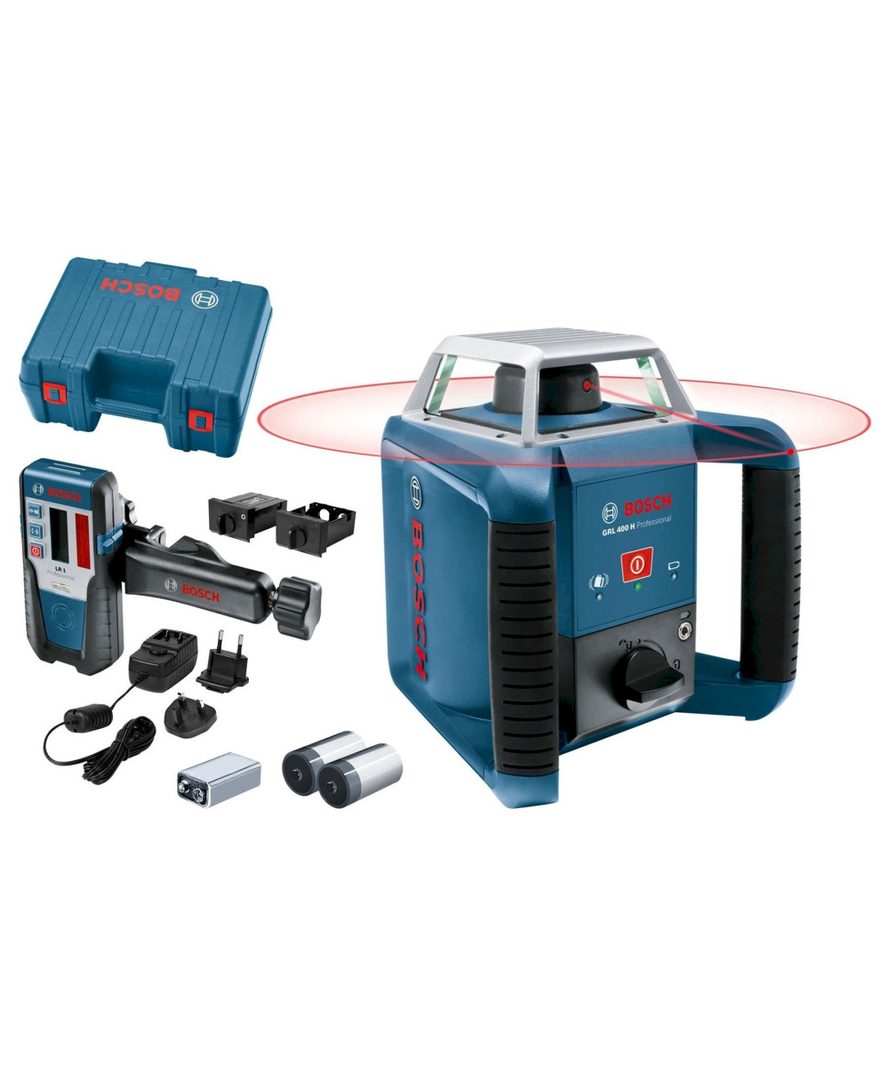 Bosch Rotationslaser GRL 400 H, selbstnivellierend, roter 360 Grad Laser LR1 , mit Koffer und Empfänger