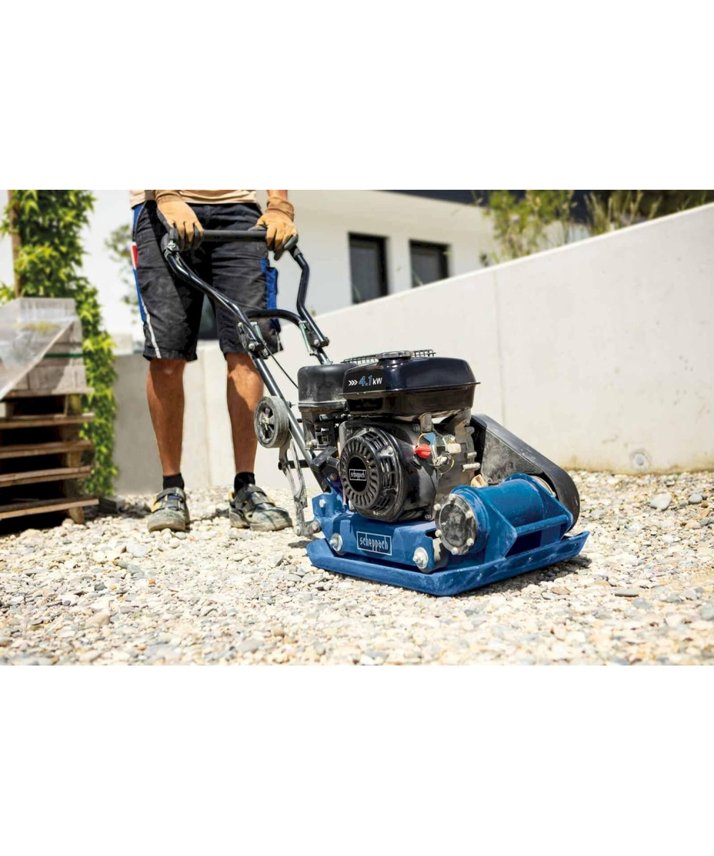 Die Rüttelplatte HP 1100 S aus dem Hause Scheppach, eignet sich sowohl für Pflasterarbeiten, als auch für den Wege-, Garten und Landschaftsbau. Die Rüttelplatte verfügt über einen leistungsstarken 4-Takt-Benzinmotor mit 4 kW/5,5 PS. Die Basisplatte aus 6 mm Stahlblech ist besonders verwindungssteif, eben und widerstandsfähig gegen Abnutzung.