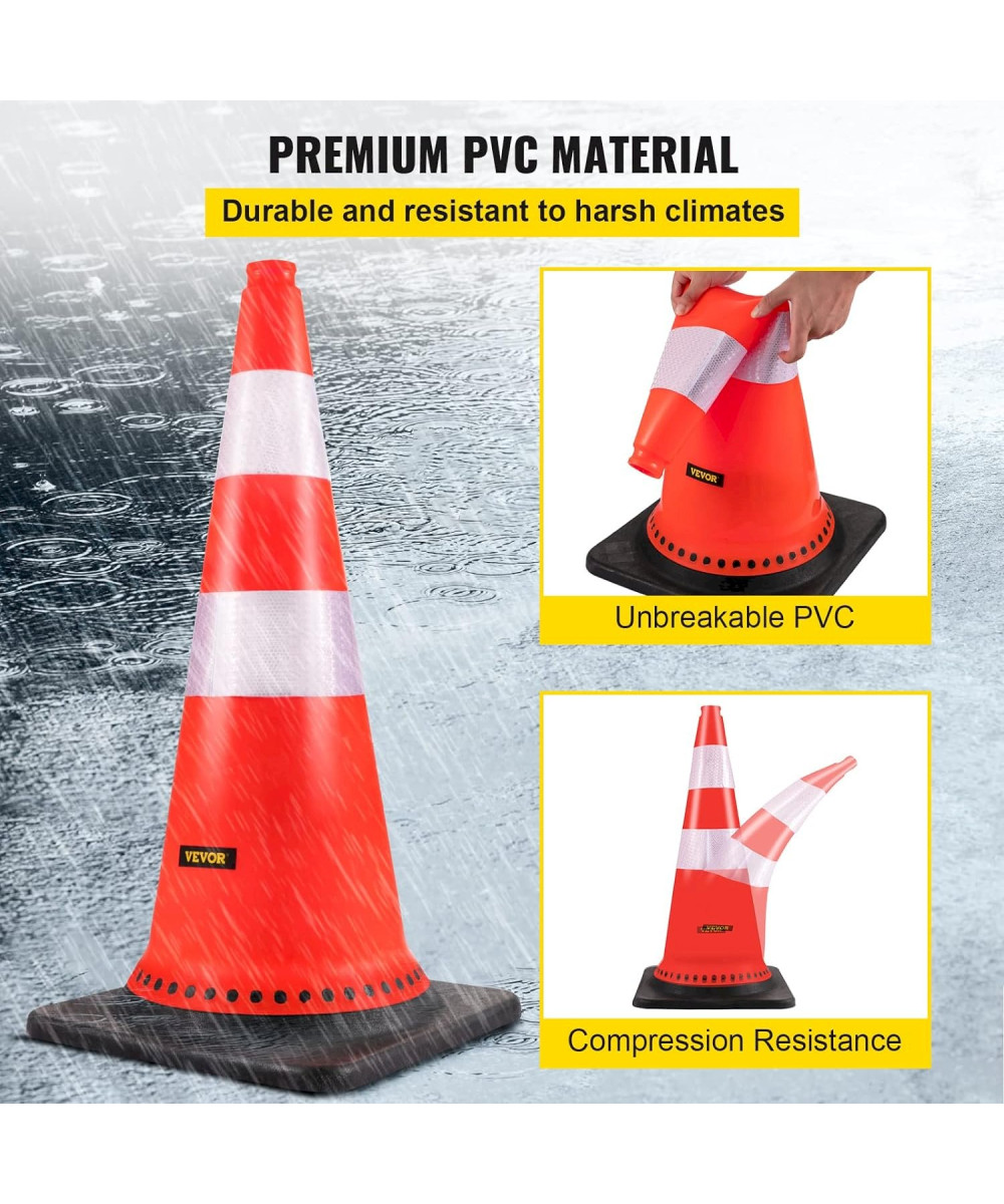 Diese 30-Zoll-Sicherheitshütchen (75 cm) sind stabil und brechen nicht, wenn sie von einem Auto überfahren werden, da sie aus PVC-Material bestehen. Daher ist dieser Verkehrskegel flexibel und nimmt sofort wieder seine Standardform an.