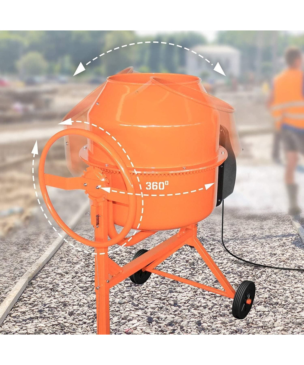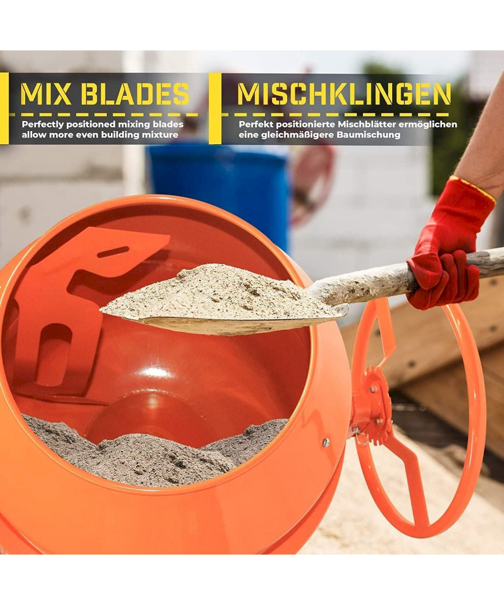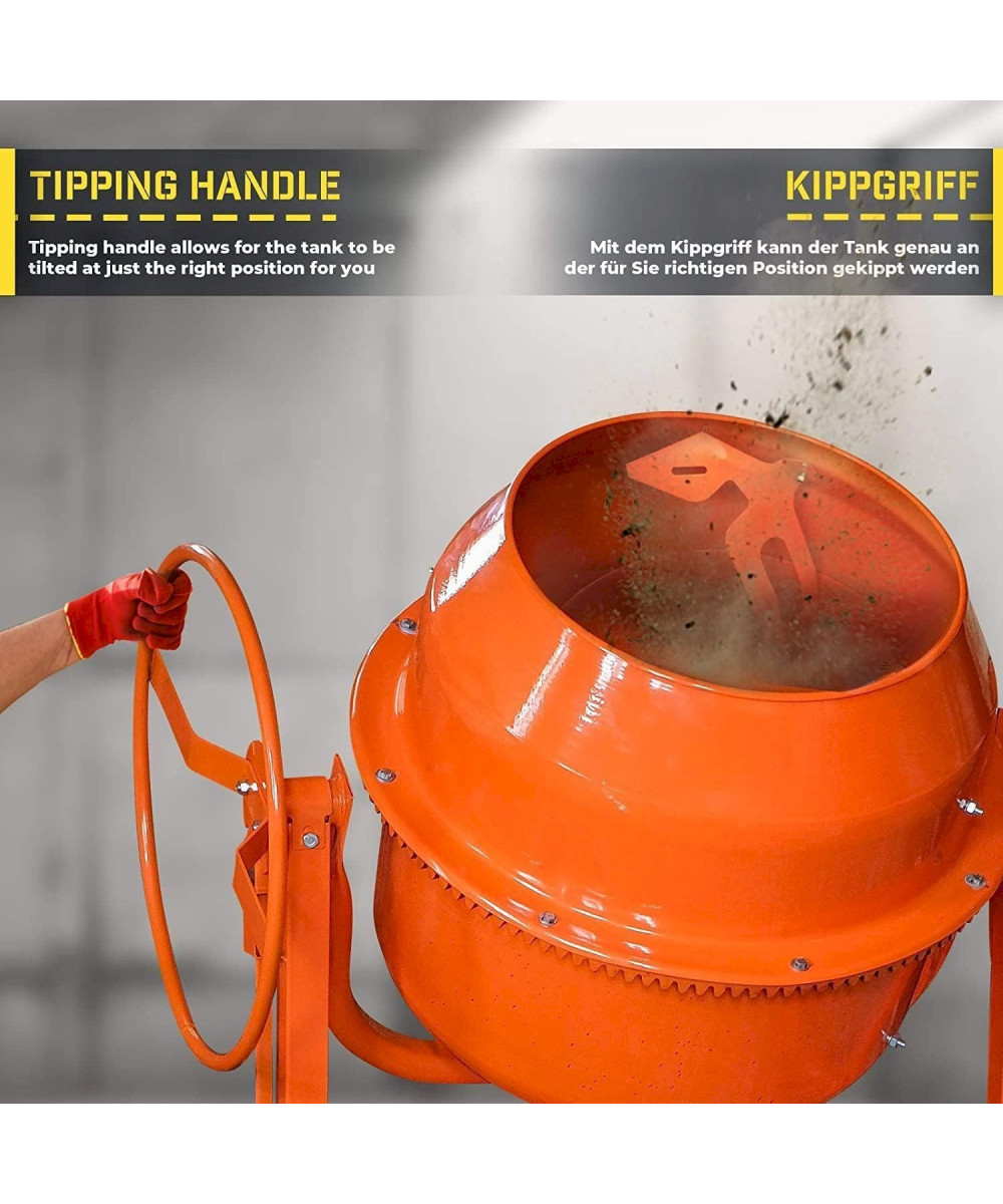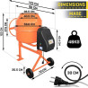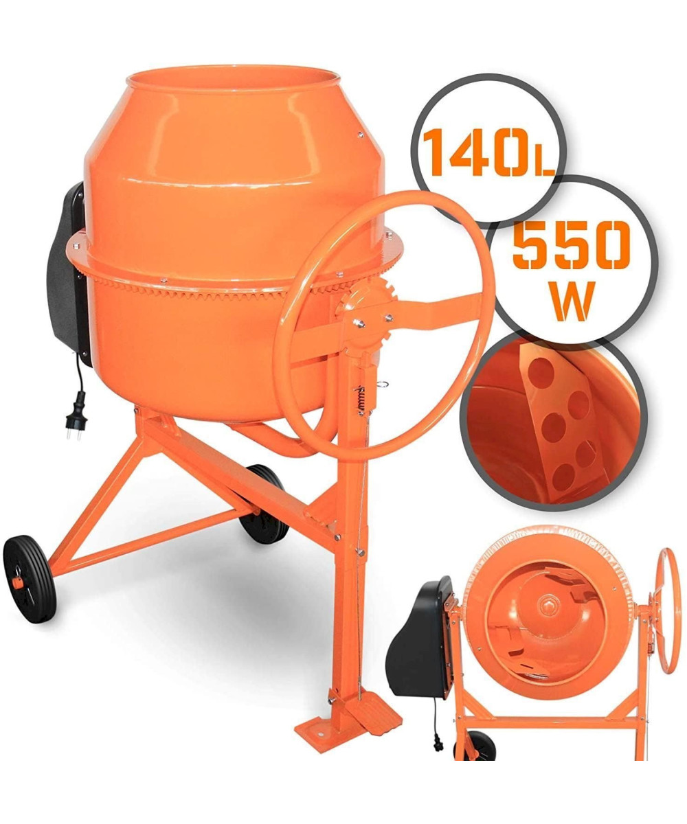 TIMBERTECH Betonmischer 140L - 550W mit Handrad/Hebel - Stahl, Orange/Schwarz
