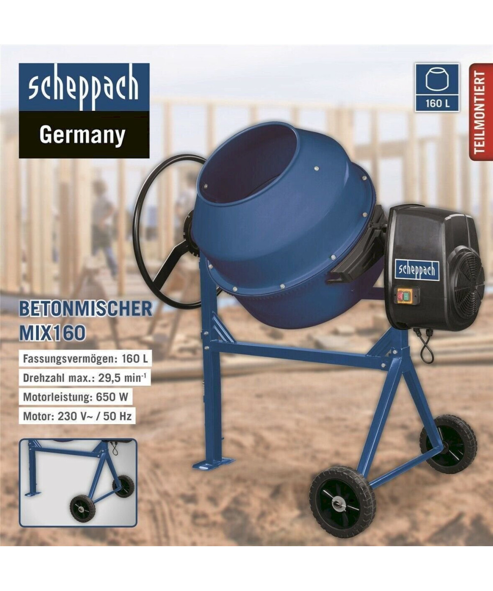 SCHEPPACH Mix 160 L Betonmischer Mörtelmischer Zementmischer Betonmischmaschine