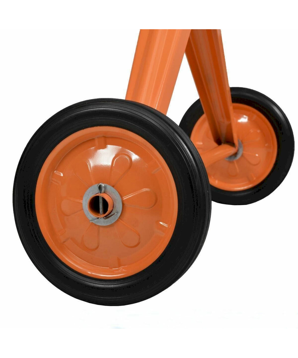 Die Fußplatte und das Fahrwerk mit 320 mm Rädern bieten einen sicheren und stabilen Stand .