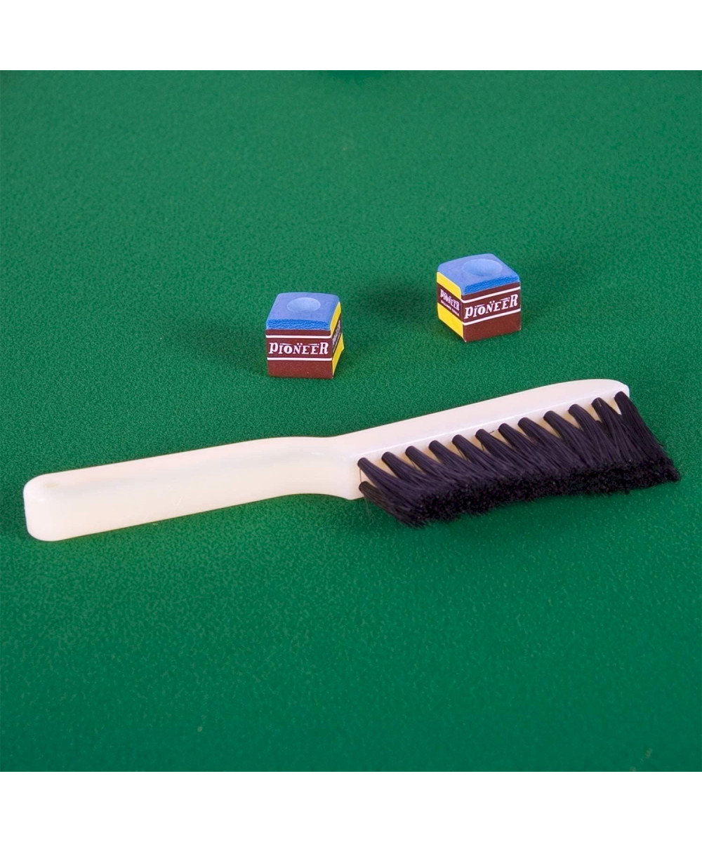 - Durch das im Lieferumfang enthaltene Zubehör (2x 92 cm Queues, 1x Satz Resin Billardkugeln Ø 38 mm, 1x Kreide, 1x Bürste, 1x Dreieck) ist alles dabei, was man zum Poolbillard spielen benötigt. Garantierter Spielspaß für Groß und Klein!