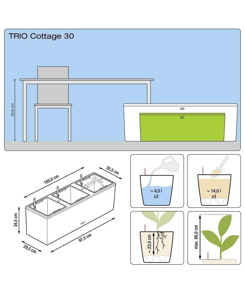 Lechuza Pflanzkasten TRIO Cottage 30 mokka, 100 x 32 x 34 cm, Kunststoff, Bewässerungssystem