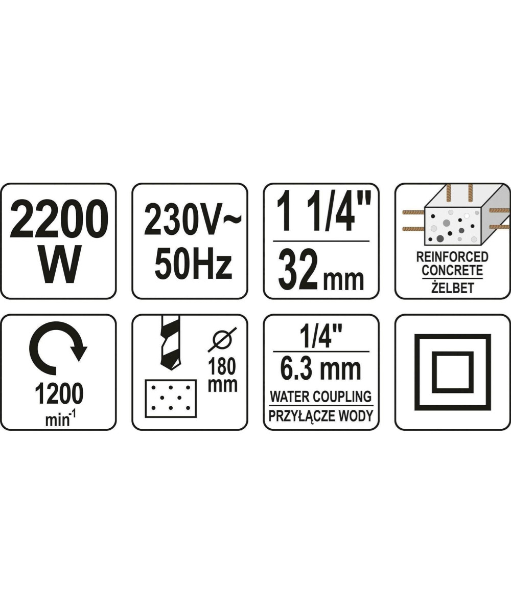 Yato YT-81980 Diamant Trocken Kernbohrmaschine 2200W mit Getriebestativ