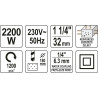 Universelle Diamantbohrmaschine für Standbetrieb oder Handarbeit. Die Maschine hat eine Leistung von 2200 Watt und arbeitet mit einer Drehzahl von 0-1200 U/min.