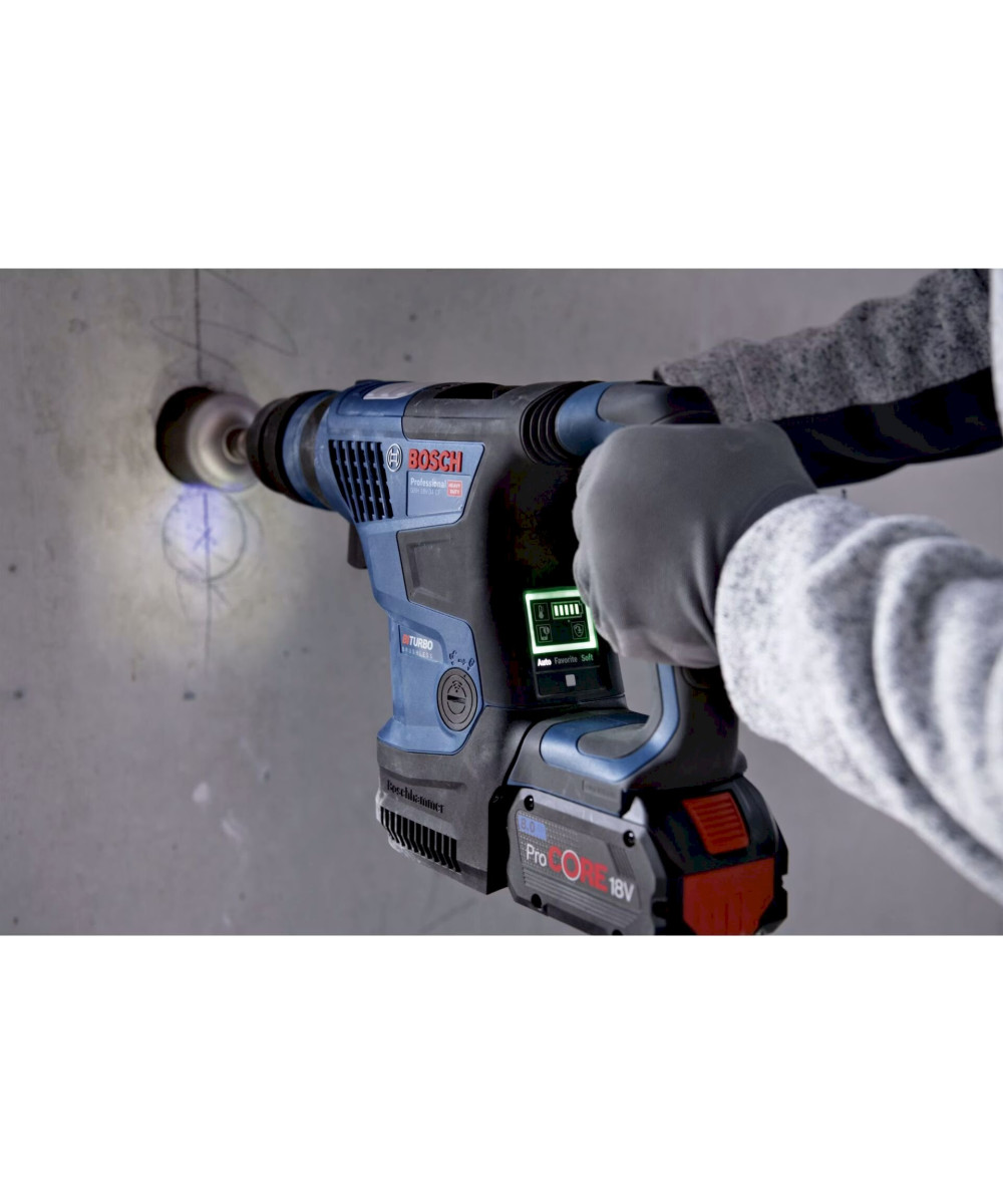 Perfekt für anspruchsvolle Arbeiten in Beton – der GBH 18V-34 CF Professional von Bosch ist der leistungsstärkste SDS plus-Akku-Hammer, ideal für anspruchsvolle Anwendungen. Dank der BITURBO Brushless Technologie und ProCORE18V-Akku bietet dieses Kraftpaket eine herausragende Leistung von 5,8 J und ist damit der leistungsstärkste Akku-Hammer mit SDS plus in seiner Klasse.