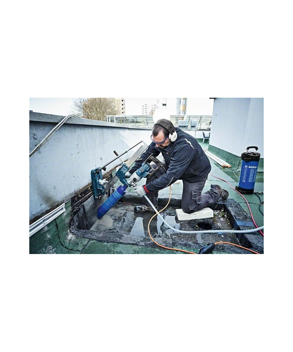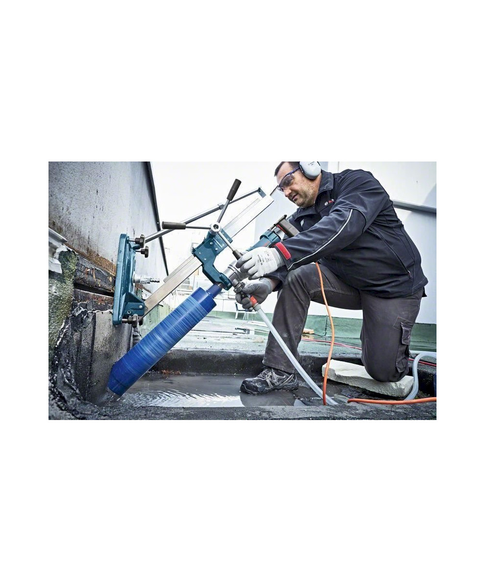 Diamantbohrmaschine GDB 180 WE. Das kompakte Kraftpaket für Bohrungen bis 180 mm in Beton. Kräftiger 2.000-Watt-Motor für Durchbrüche in armierten Beton bis 180 mm. Hohe Lebensdauer durch robuste Bauweise und Getriebe mit Ölbadschmierung. Anwendung nass und trocken. Sowohl hand- als auch ständergeführt. Geringes Gewicht von nur 5.2 kg für ermüdungsarmes Arbeiten. Ideal im System mit Bohrständer GCR 180 (Bestellnummer 0 601 190 100). Absaugadapter. Kugelhahn. Handwerkerkoffer.