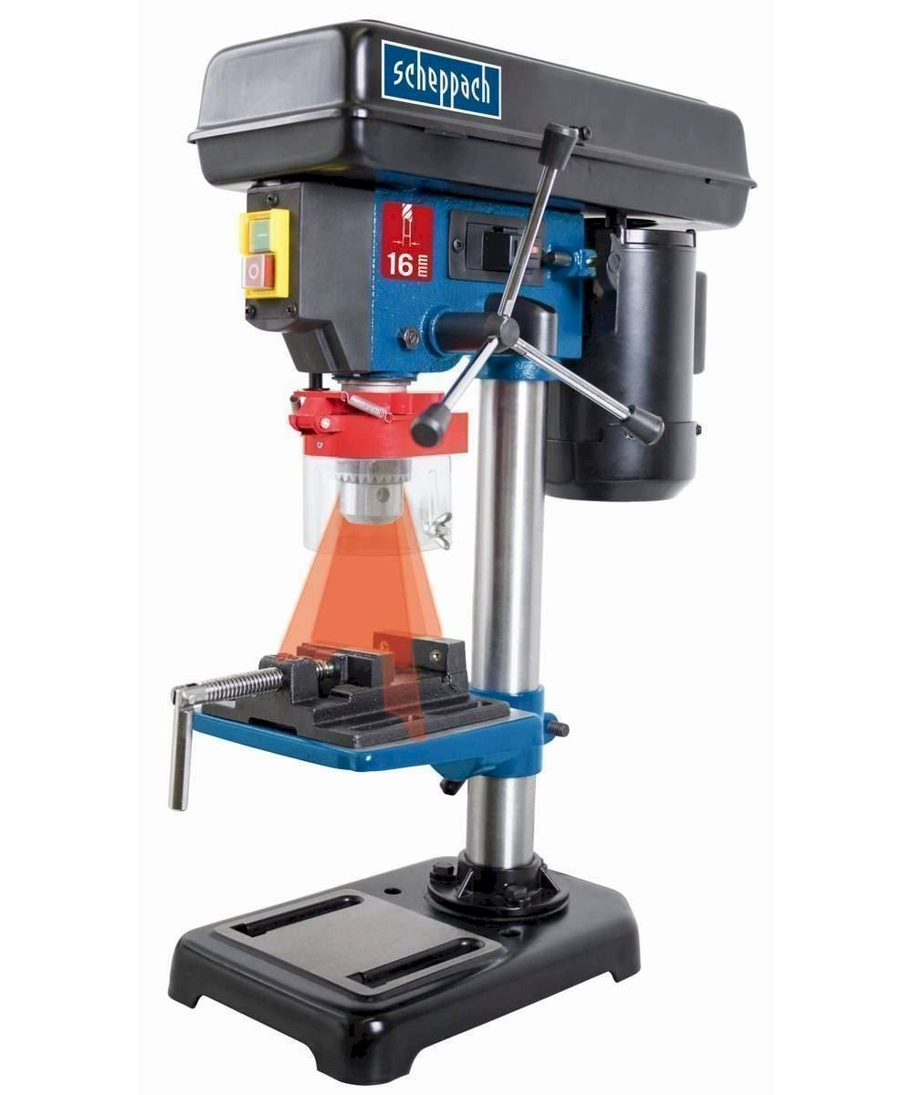 Die Scheppach Tischbohrmaschine DP16VL verfügt über einen Positionslaser für präzise Bohrergebnisse. Egal ob in Metall, Kunststoffen sowie Hart- und Weichholz, bietet sie vielseitige Einsatzmöglichkeiten.
