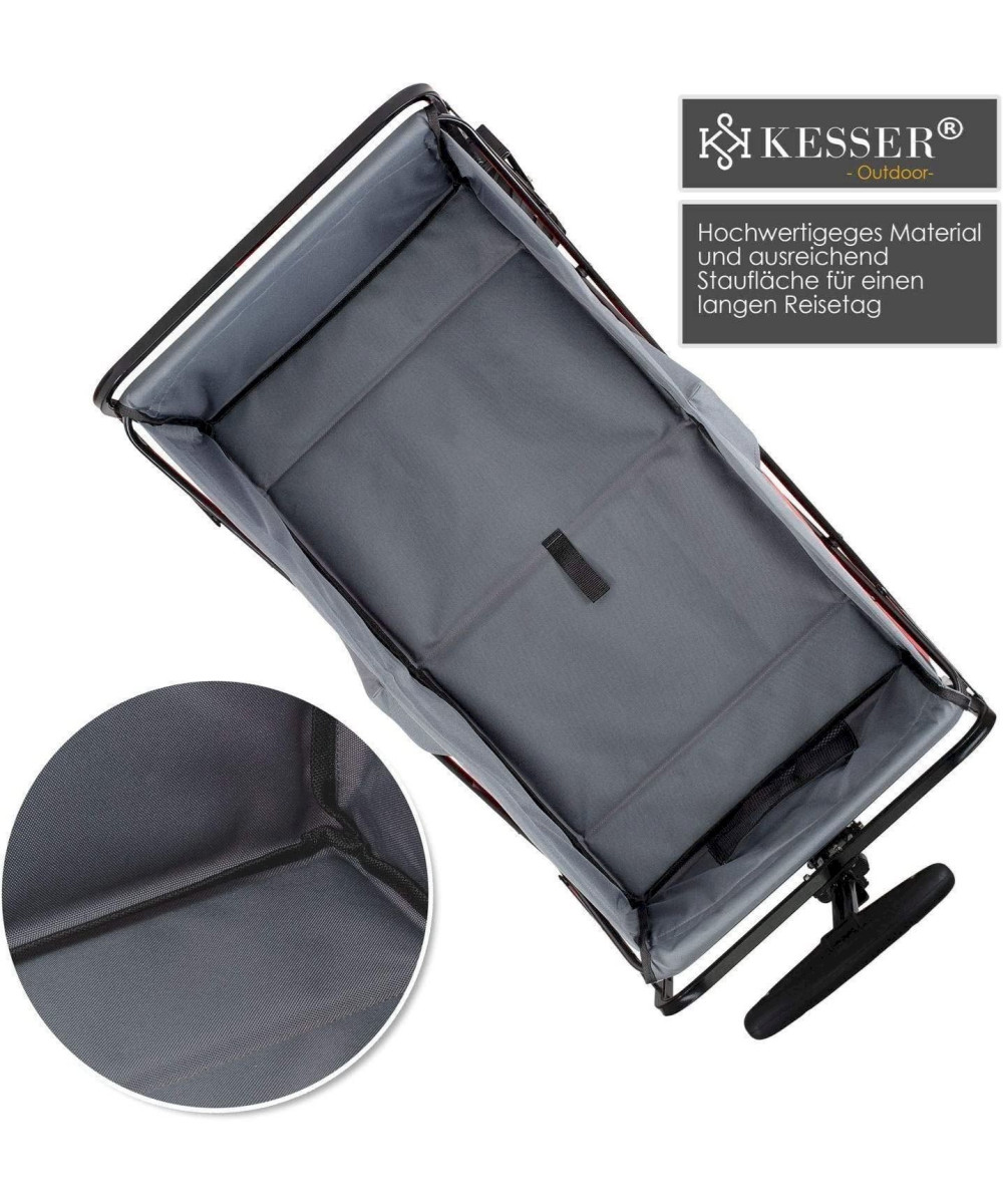 Der KESSER faltbare Bollerwagen ist Ihr idealer Begleiter für alle Ausflüge . Mit seiner großen Ladefläche und dem zusätzliche Getränke Halterungen ordentlich Platz für Ausflüge mit den Kids, Festivals oder sonstige Freizeitaktivitäten bietet, lässt er sich schnell aufbauen wie wieder platzsparend verstaut .