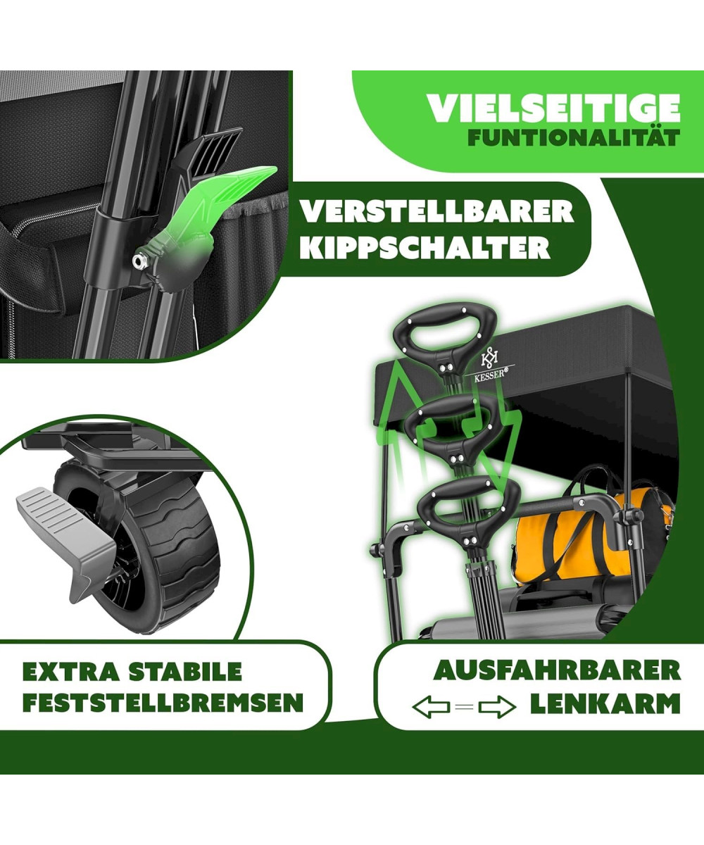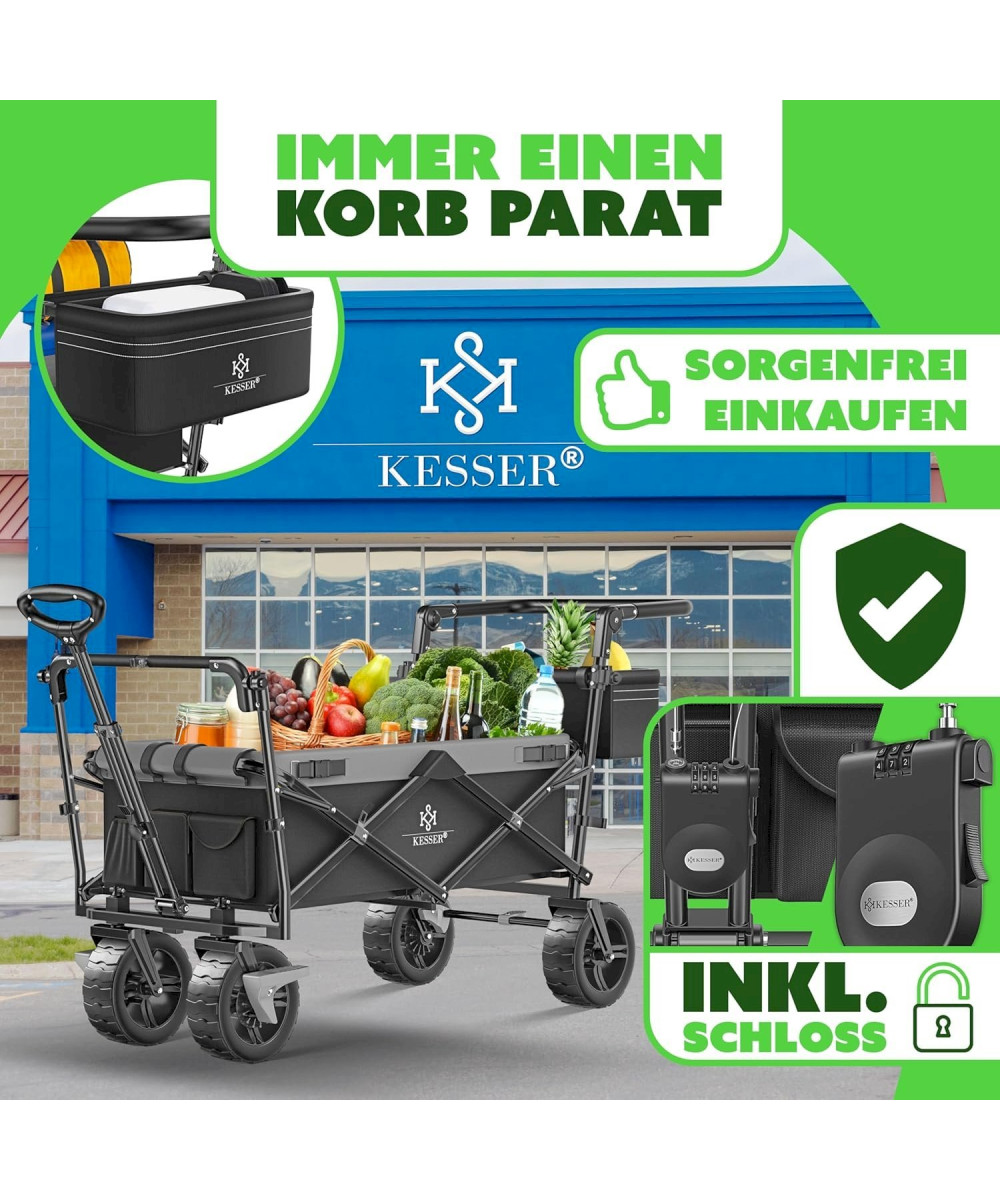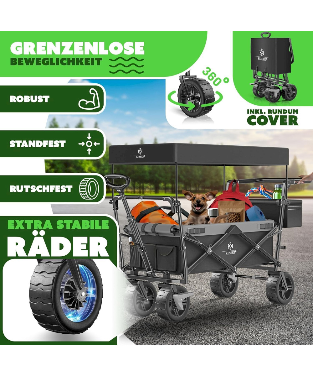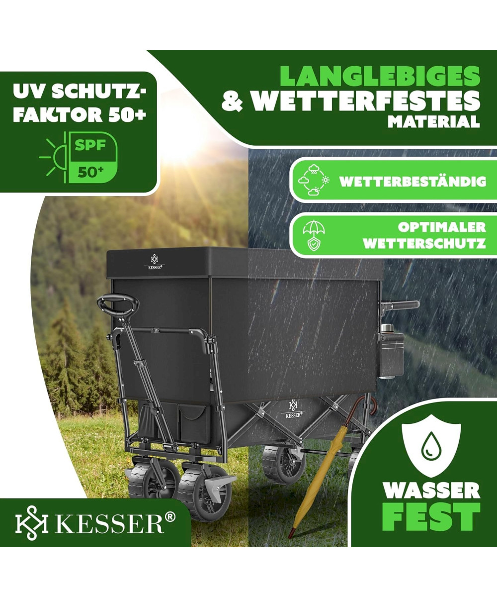 Der KESSER faltbare GT-9000 Bollerwagen mit abnehmbarem Dach, Cover (Tragetasche) und Schloss ist vielseitig einsetzbar.