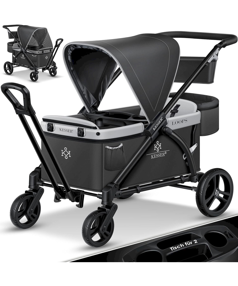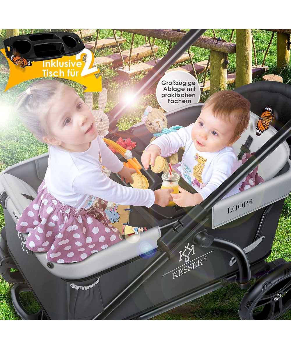 Bollerwagen LOOPS faltbar 2in1 Kinderwagen Handwagen mit Dach dunkelgrau