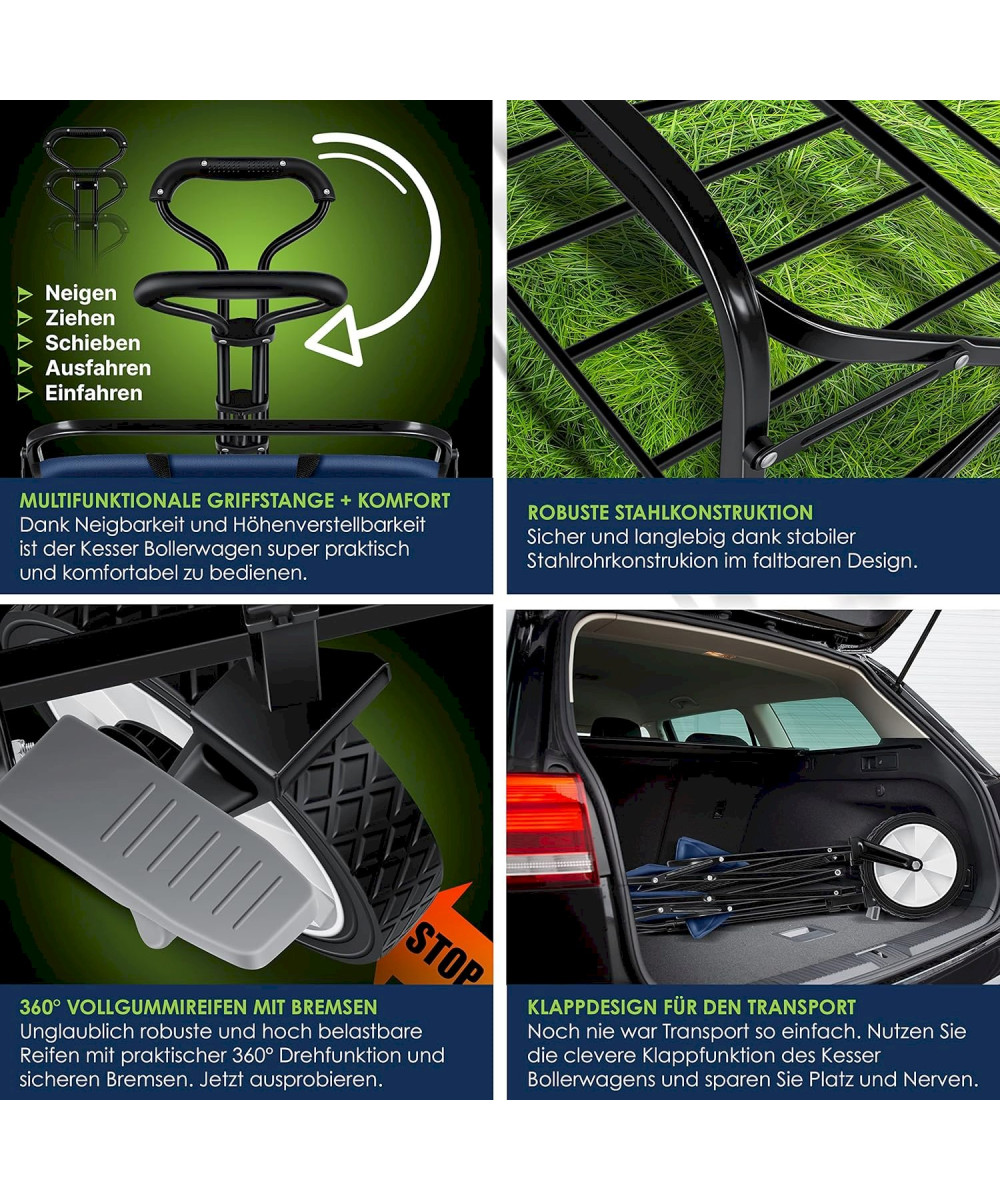 KESSER Bollerwagen Faltbar Offroad Handwagen Klappbar Transportkarre Blau