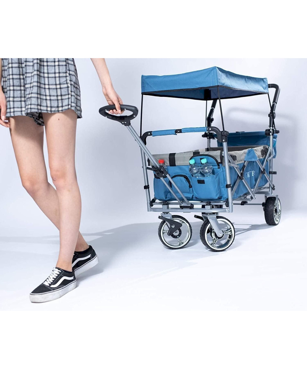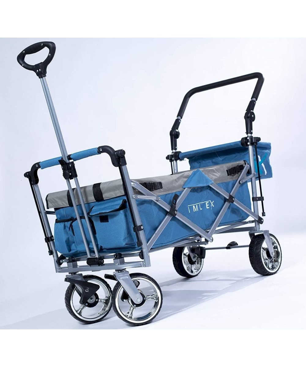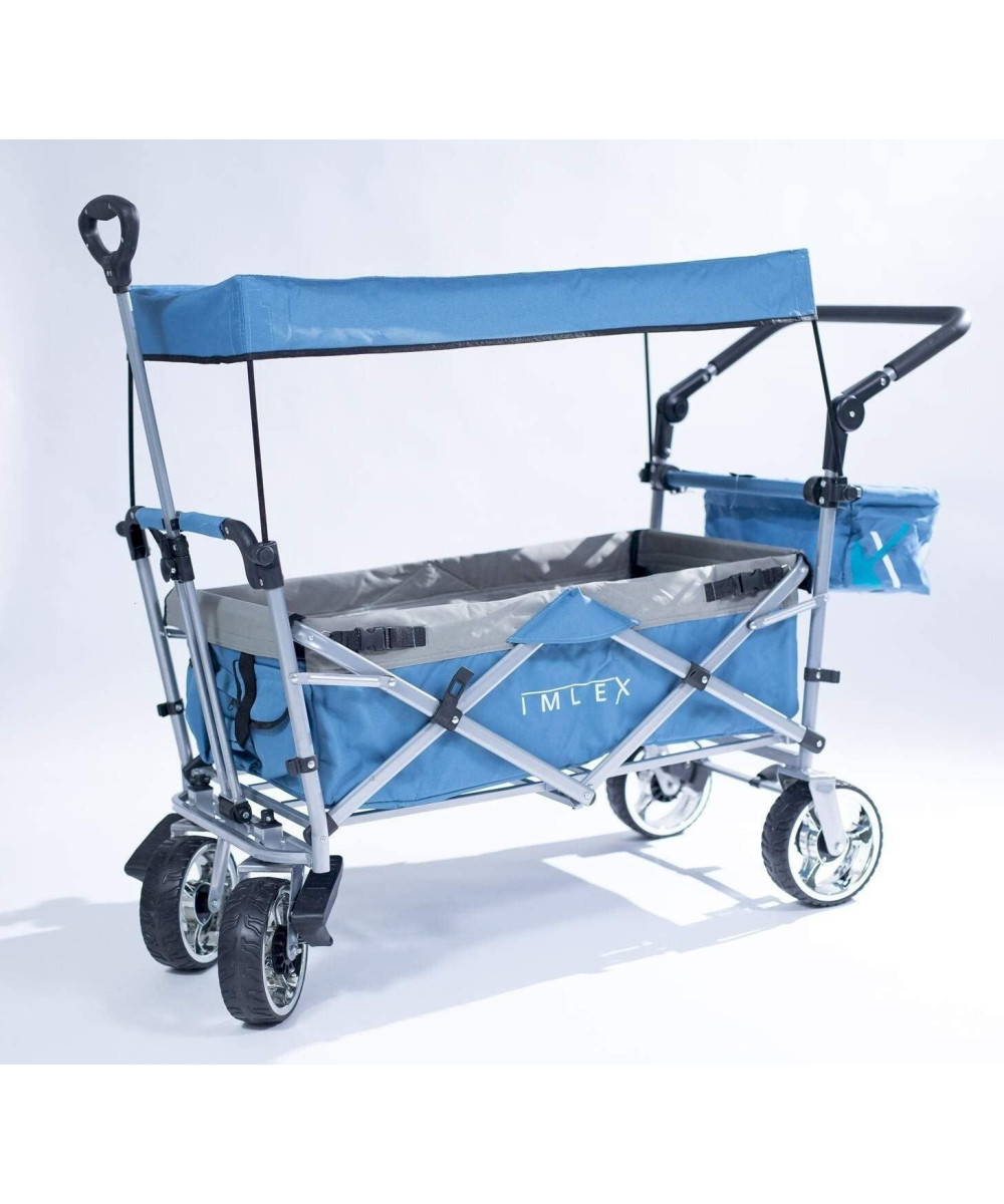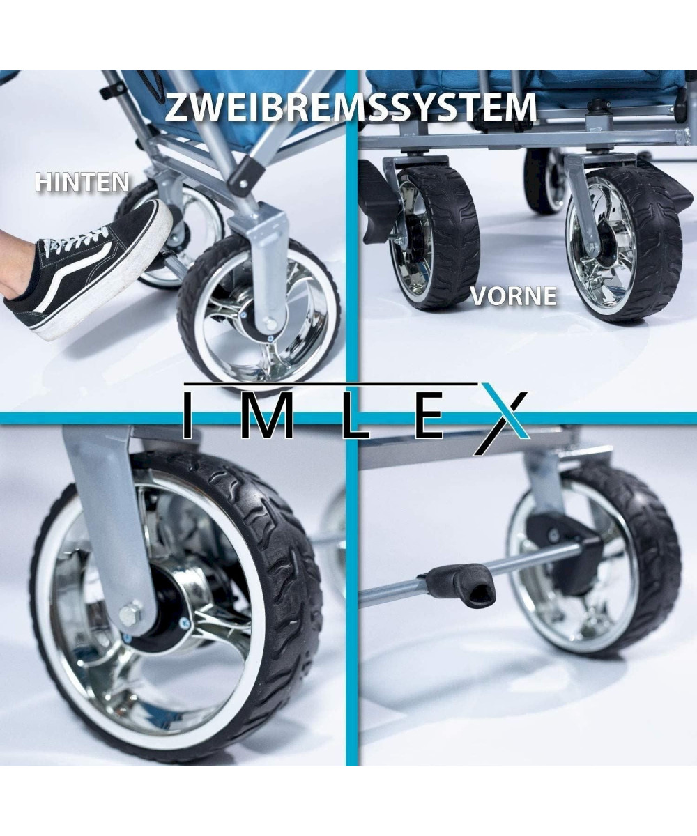 IMLEX Bollerwagen IM-4268 Faltbar mit Schiebe und Zieh Funktion Strandwagen Blau/Grau