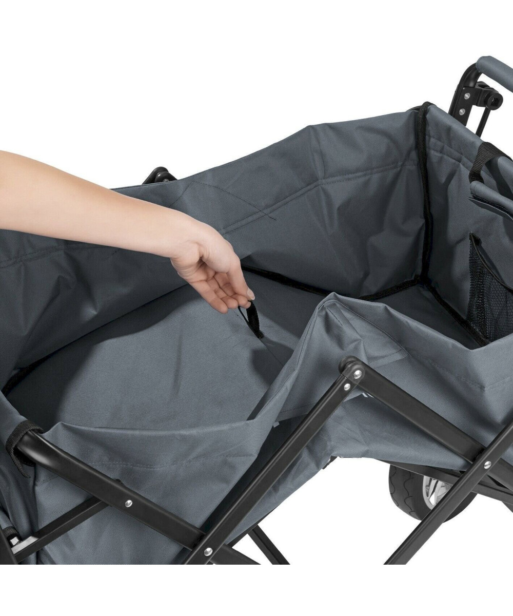 - Lieferumfang: 1 x Bollerwagen inkl. Handgriff & Schiebegriff, 1 x Getränkehalter, 1 x Kühltasche mit Halterung, 1 x Dachbezug, 1 x Transport-Abdeckhaube